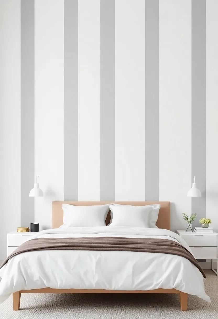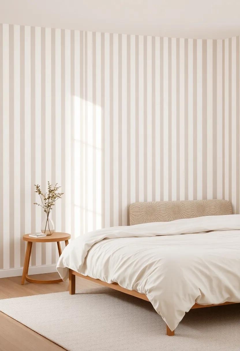 Additionally, a well-thought-out combination of textures can enhance this effect without cluttering the space.Consider pairing your striped wallpaper with elements like natural wood finishes or soft cottons to create a balanced and inviting retreat. The simplicity of one unified stripe amidst a monochrome backdrop can elevate the aesthetic of your sanctuary, inviting calmness and style into your everyday life.