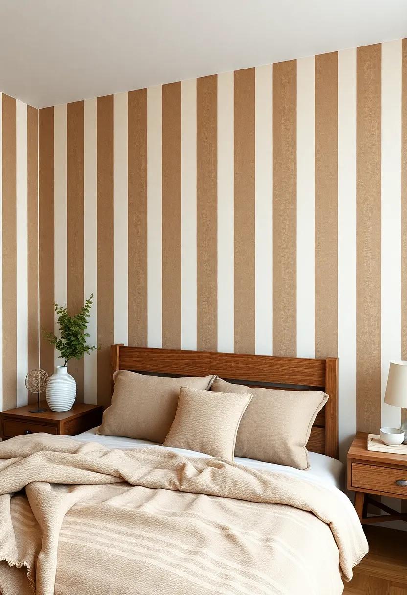 Add a Touch of Rustic Charm: A distressed striped wallpaper in earthy tones can bring a cozy, rustic vibe to your bedroom, perfect for those who love a farmhouse aesthetic