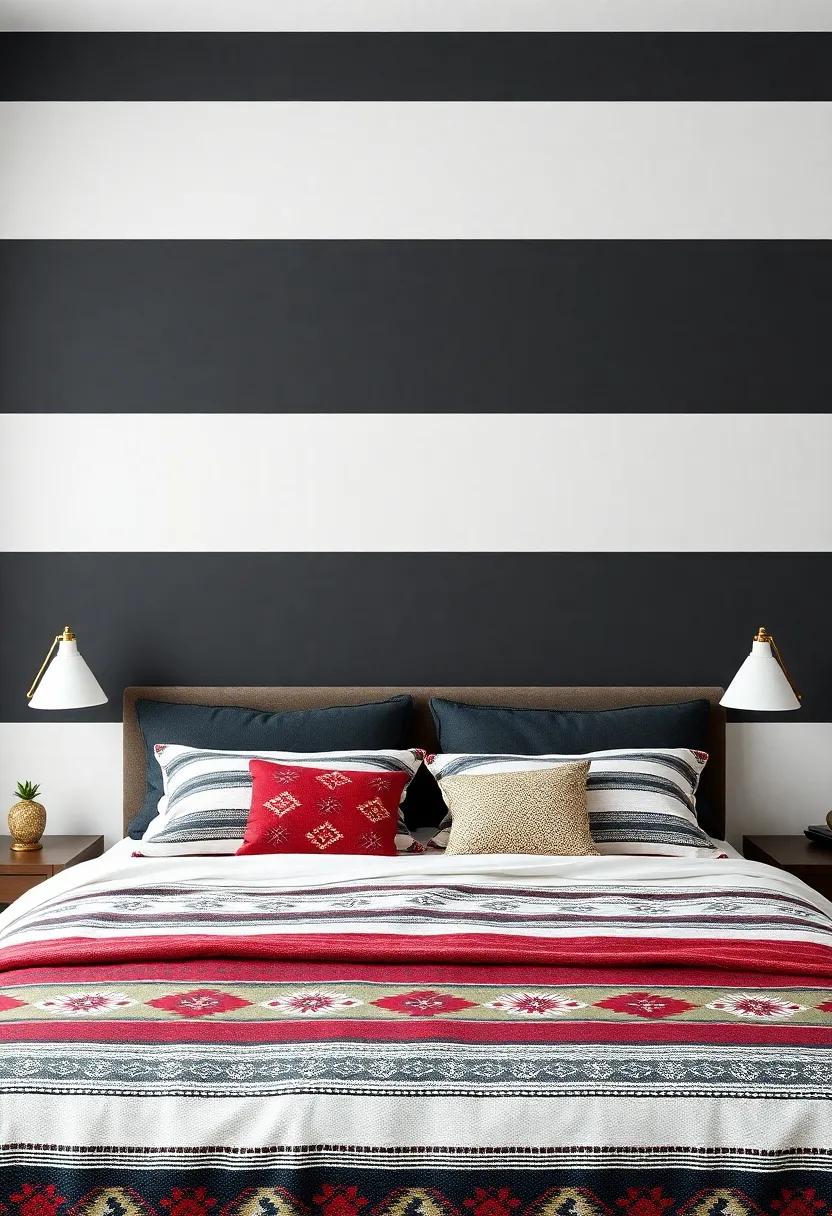 Ethnic Patterns: Explore ethnic-inspired striped designs that incorporate cultural motifs for a unique and globally-inspired bedroom