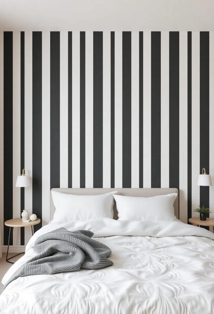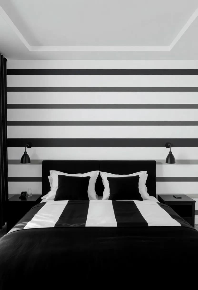 high-Contrast Drama: Black and white stripes can make a striking statement in your bedroom, adding a touch of glamour and modern flair
