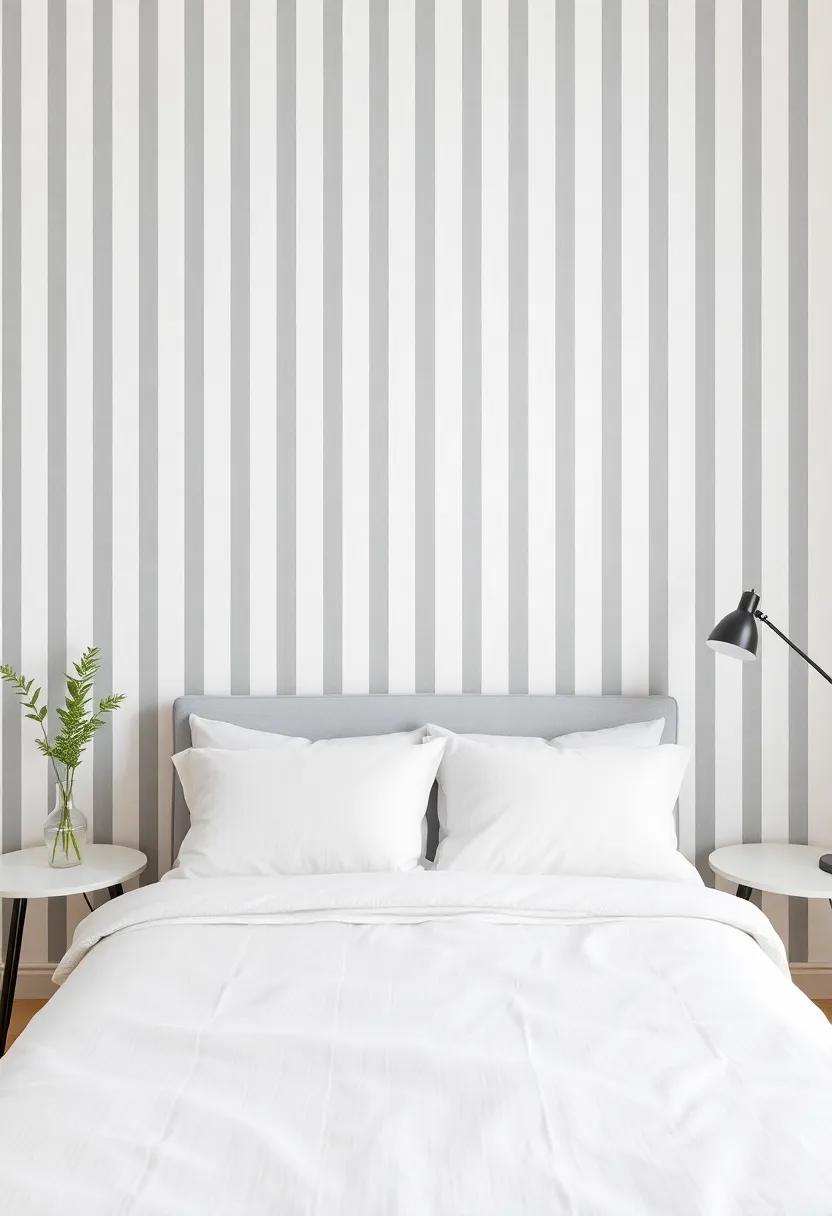 Subtle Monochrome Magic: Choose a soft gray and white striped pattern for a minimalist look that complements contemporary decor without overwhelming the space