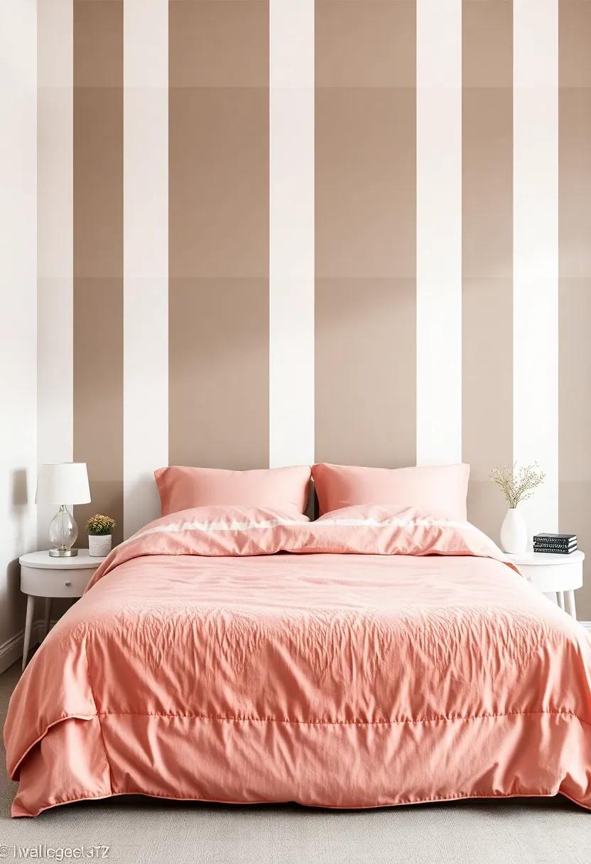 - Textile Coordination: Incorporate striped bedding or pillows to harmonize with the wallpaper.