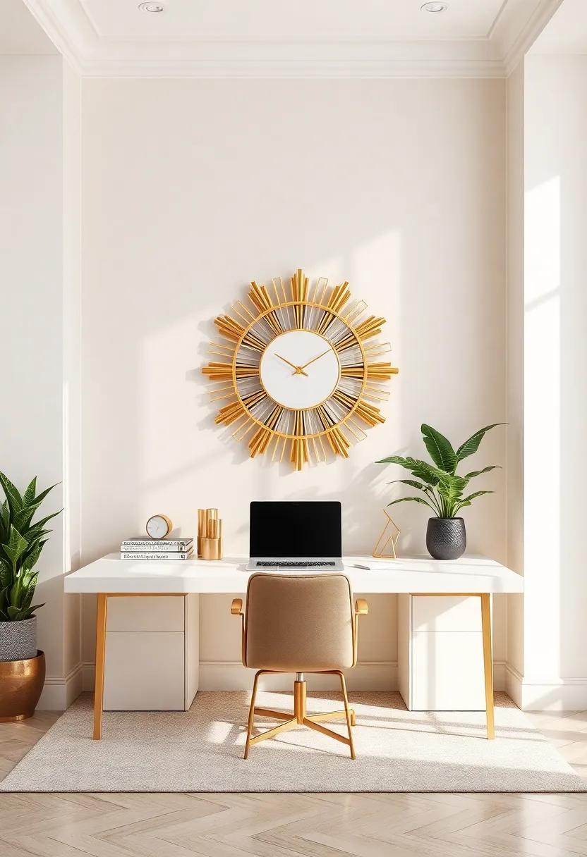 Pairing a stunning sunburst clock with thoughtful decor will elevate your home office into a realm of creativity and focus. Consider the following elements to enhance the elegance of your workspace: