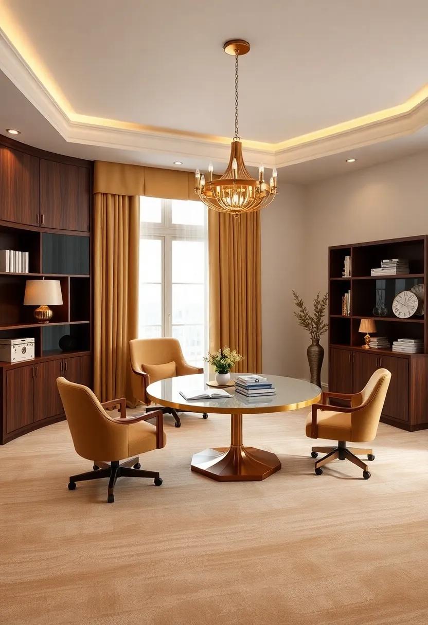 - Art Deco Lighting: Pendant lights featuring gold accents that cast a warm glow, creating an ideal setting for focused work.