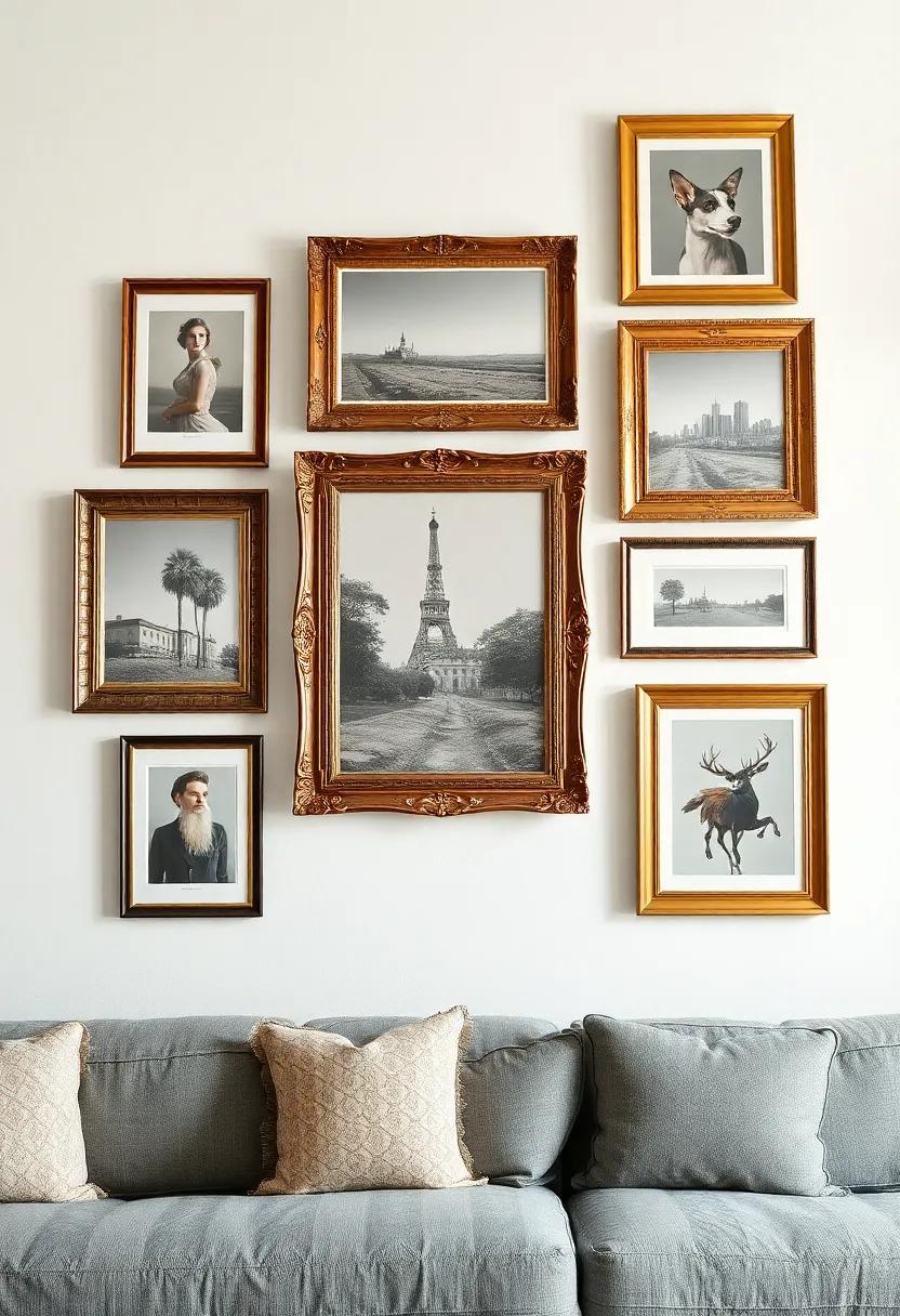 Transforming your space into a curated gallery wall is an art in itself, and using antique frames can add character and depth to your display. Embrace the juxtaposition of eras by pairing vintage frames with your favorite modern prints. This technique not only highlights the elegance of the aged frames but also accentuates contemporary art, creating a dialog between the old and the new.