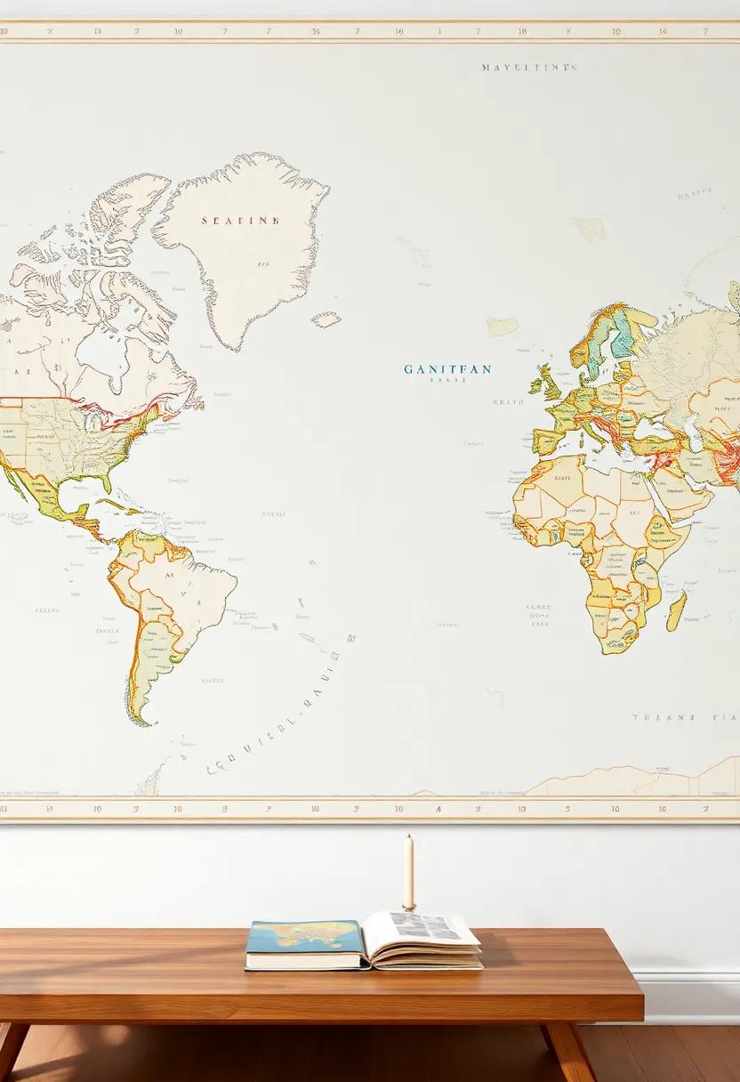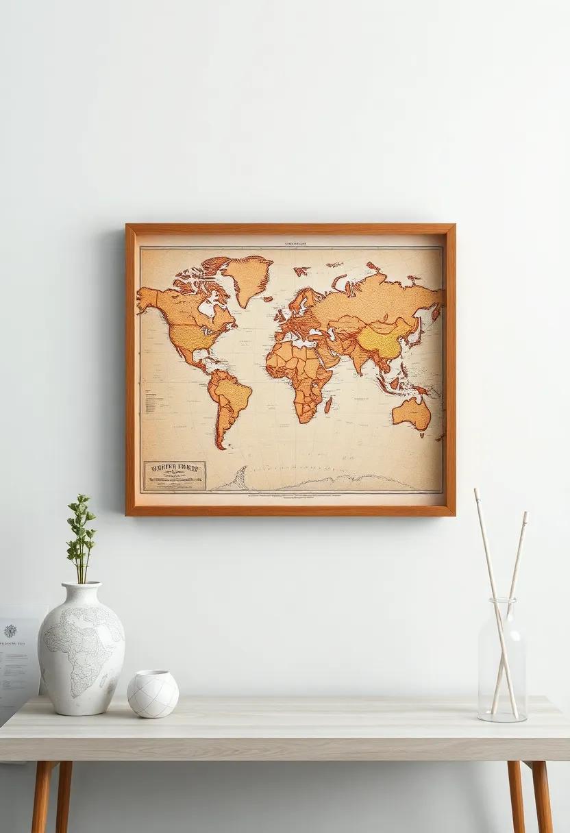 - Decorative Compasses: Incorporate maps featuring ornate compass roses that serve as artful focal points.