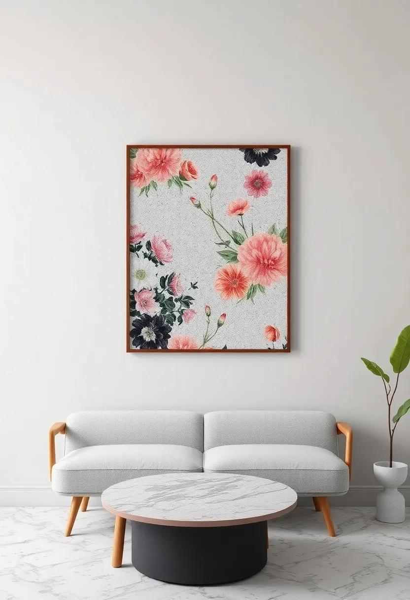 Floral terrazzo art combines the boldness of contemporary design with nostalgic charm,making it the perfect accent for a grandmillennial-inspired space. By incorporating pieces that showcase intricate floral patterns set against colorful speckled backdrops, you can breathe life into any room while celebrating the essence of both modern aesthetics and vintage allure. Consider selecting a large terrazzo mural embellished with delicate flowers that harmonize with your existing decor, or opt for smaller terrazzo art pieces that can be arranged in a gallery wall format, allowing for playful interaction between different styles.