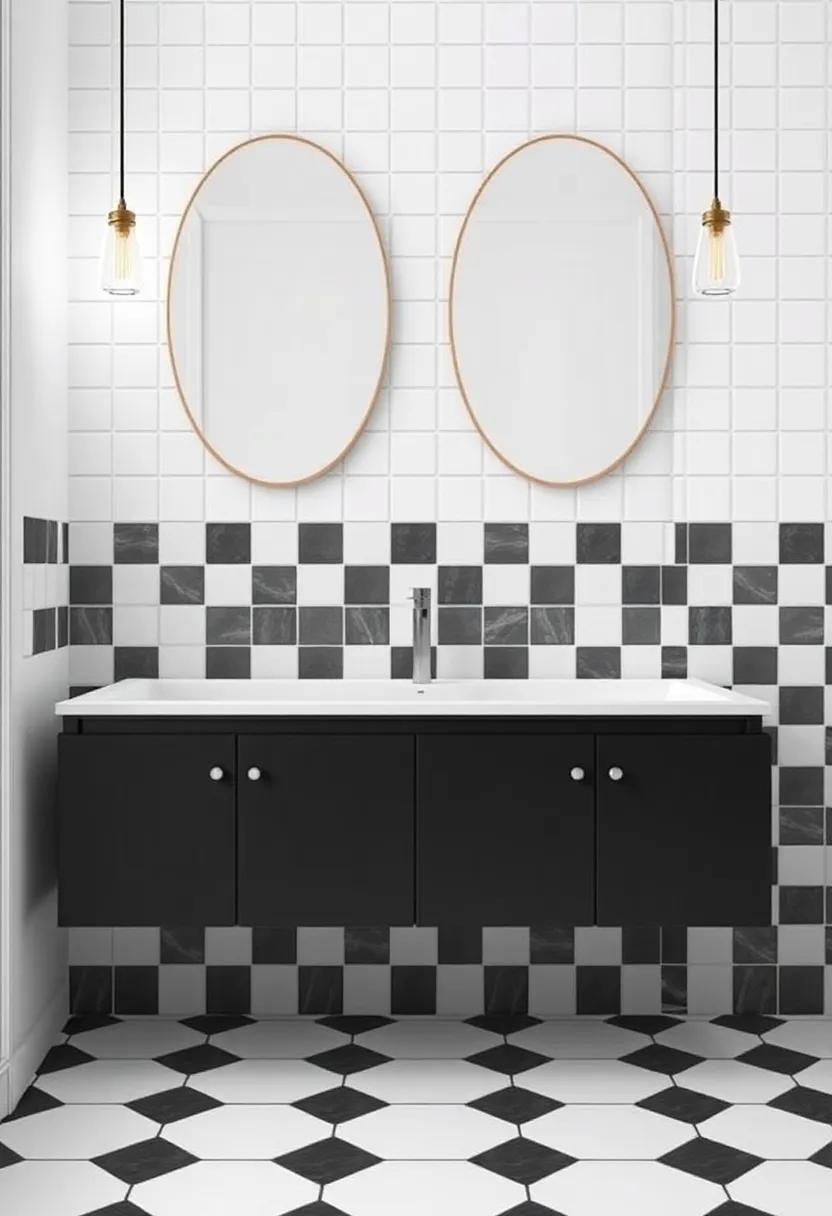 Classic Black and White: Embrace timeless elegance with a classic black and white checkerboard pattern that instantly elevates your bathroom style
