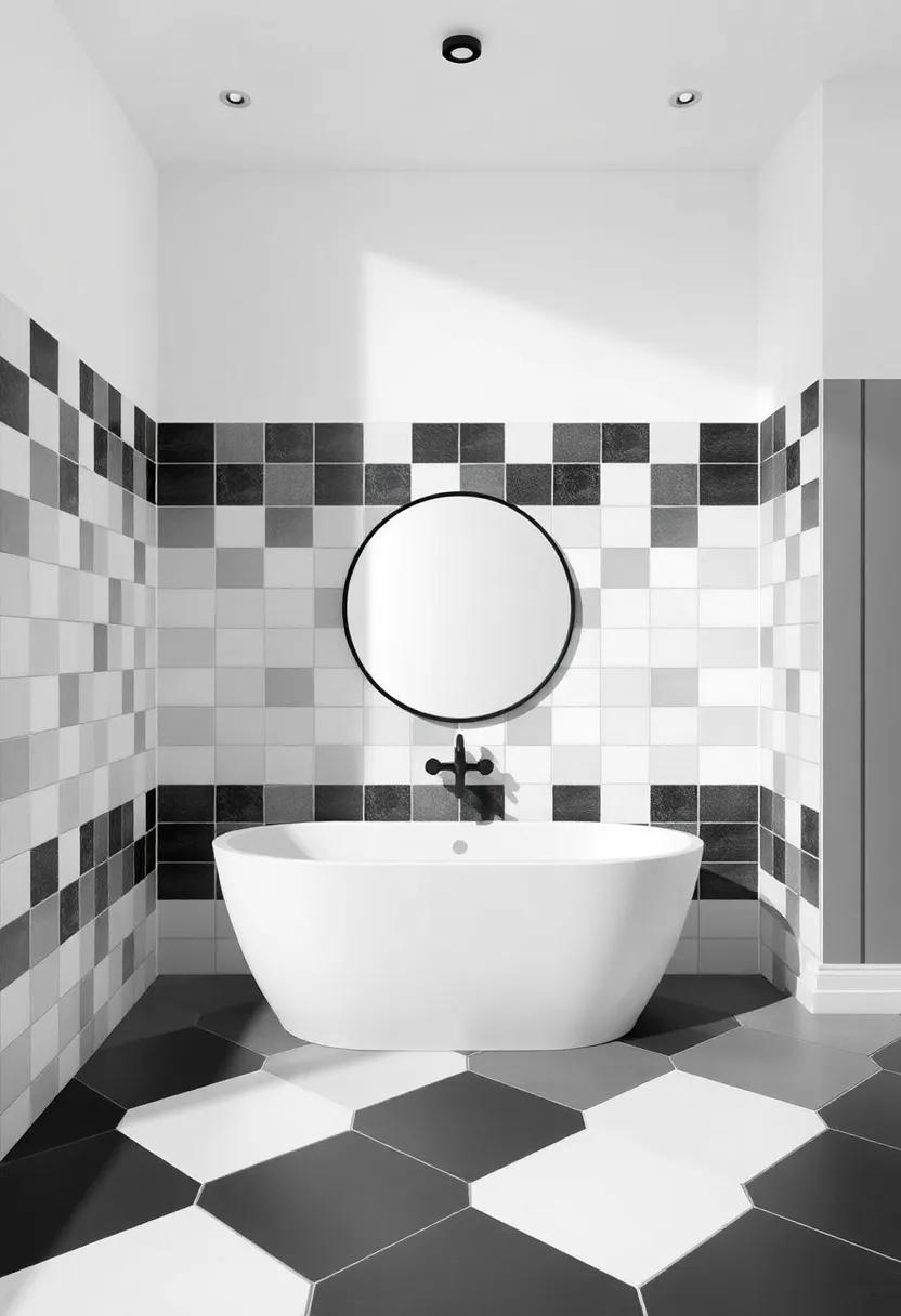 - Wall Accent: Use the checkerboard pattern as a focal wall behind a freestanding tub for an eye-catching look.