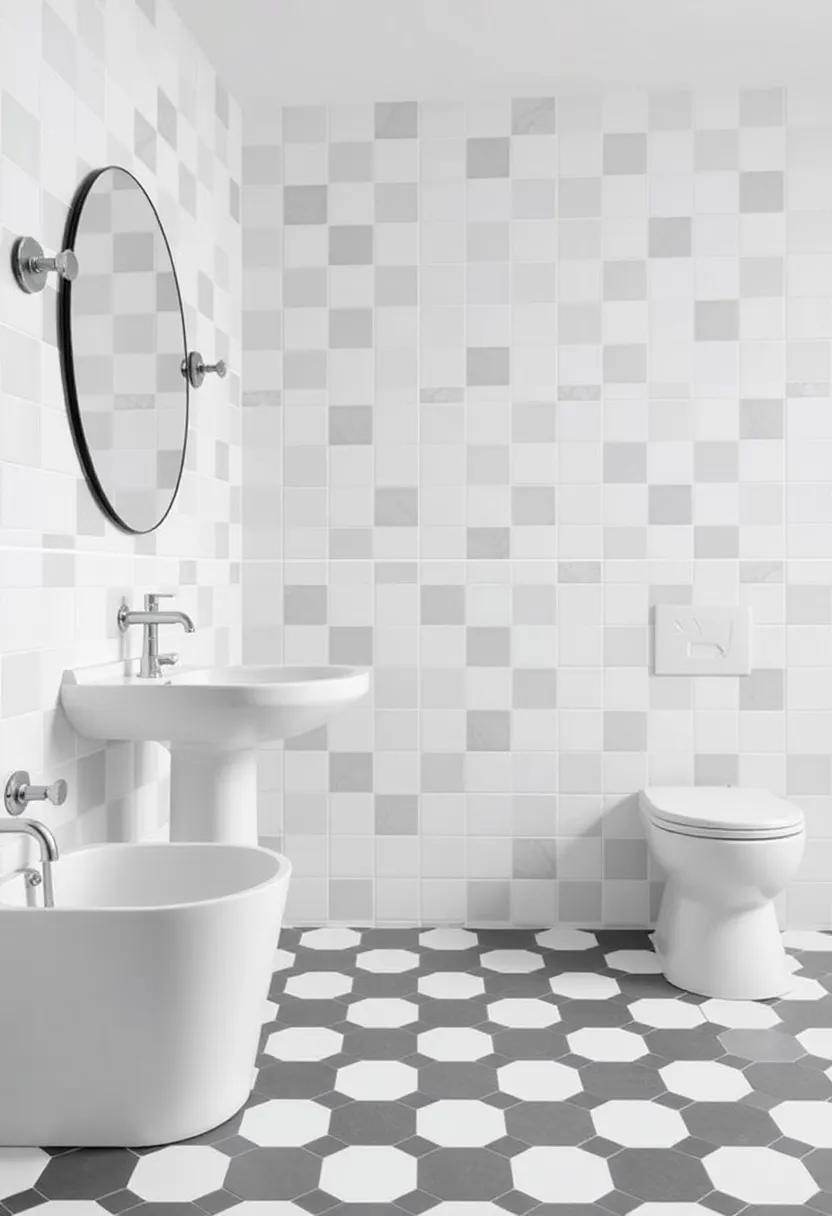 - Neutral wall colors: Keep the focus on the tile pattern while maintaining balance.