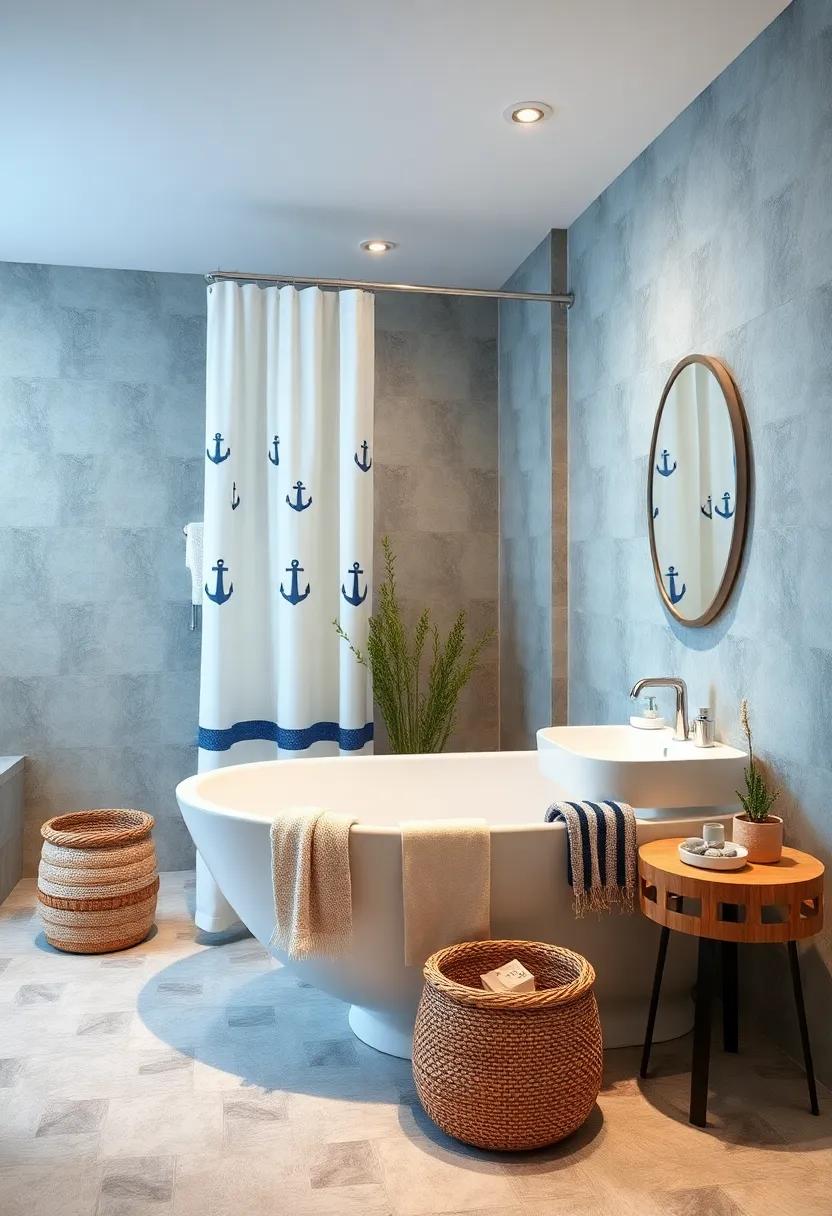 choose nautical-themed shower curtains adorned with anchors, stripes, or marine life for a playful touch