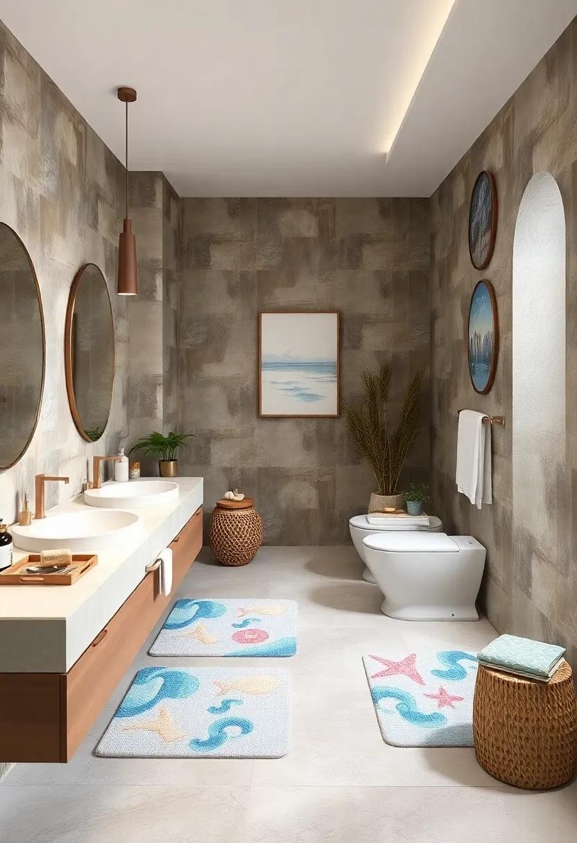 Consider incorporating designs featuring delicate seashells or fanciful nautical elements, which can serve as conversation starters while reinforcing the beachy vibe. Placing a bath mat showcasing intricate seashell prints not only enhances visual interest but invites a whimsical feel to your bathroom décor. You might even find mats that blend these elements together—a colorful piece that combines waves and shells can serve as a stunning centerpiece in front of your vanity. No matter the design you choose,these accessories are a simple yet effective way to evoke the peaceful essence of the coastal environment and ensure that your bathroom feels like a serene retreat.