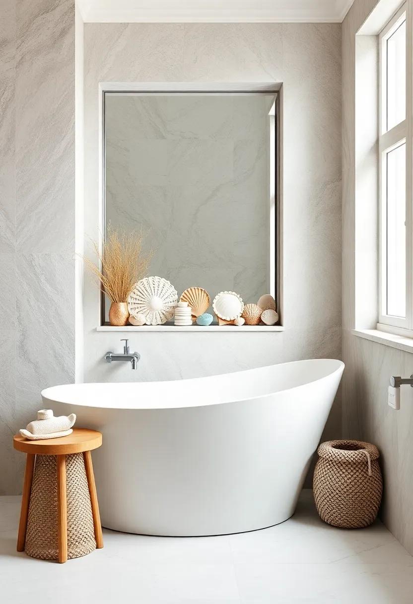 Transform your bathroom’s atmosphere by creating an alluring display of seashells that whisper tales of the ocean. Start by collecting an array of seashells and beach finds, varying in size, color, and texture, to display their natural beauty. Use a charming glass jar or a sleek ceramic bowl to house your collection. Consider layering smaller shells at the base and larger ones atop for depth, or arrange them by color to create a gradient effect. accent the display with driftwood or dried sea grasses to evoke a true coastal vibe.