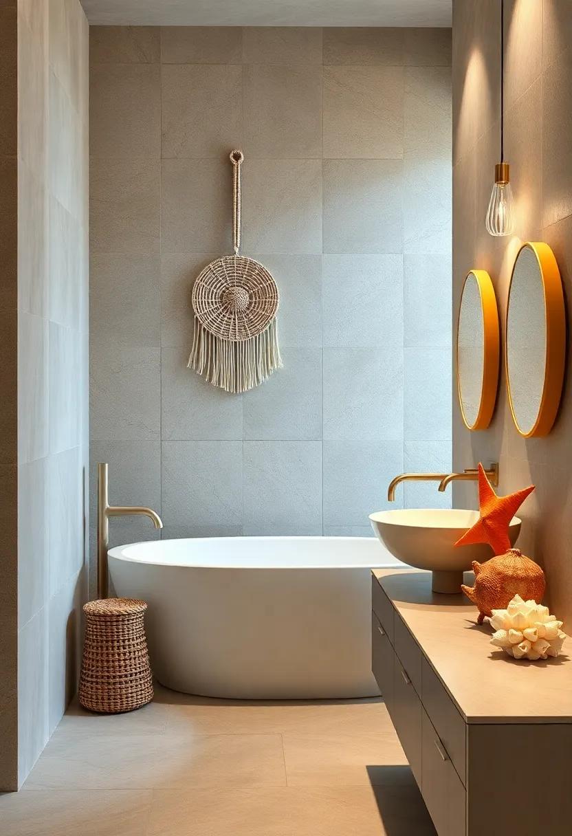 Sea glass offers a more colorful approach to adornments, reminiscent of sunlit shores. Use it to fill a glass jar or vase to add a sparkling touch, or incorporate it into a mosaic design for a truly personal art piece. Exotic shells are another delightful option; try arranging them in shallow dishes as a decorative element or adhering them to a mirror frame for an ocean-inspired focal point. By thoughtfully integrating these treasures into your decor, you can transform your bathroom into a haven that celebrates the beauty and tranquility of seaside living.