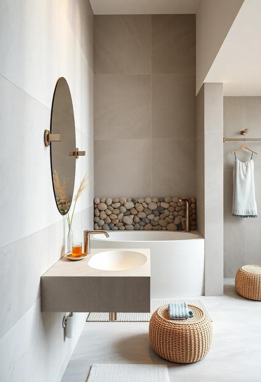 Transform your bathroom into a serene seaside escape by incorporating a pebble-stone backsplash behind the sink. This unique addition not only captures the essence of a tranquil beach but also offers a tactile experience reminiscent of coastal strolls. The natural textures and varied shapes of the stones will create an organic and inviting atmosphere, making your daily routines feel like a trip to the shore.