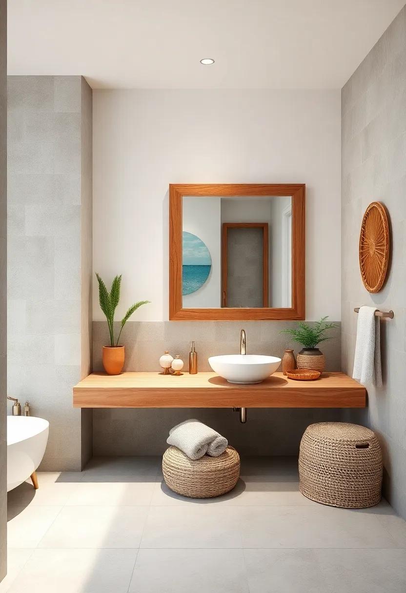 This combination will create a cohesive design that mirrors the beauty of the beach while ensuring your bathroom feels like a peaceful retreat. A well-placed mirror not only serves a practical purpose but also transforms into a stunning piece of décor that invites the essence of coastal living into your home.
