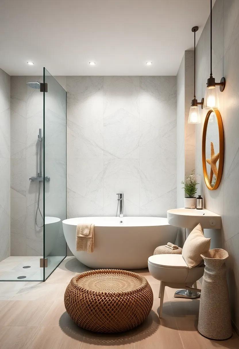 If you want to truly capture the essence of the coast, consider incorporating nautical-inspired light fixtures into your bathroom. Hanging lanterns bring a rustic charm that echoes the flickering lights of seaside fishing vessels. Choose fixtures made from materials like weathered metal or glass, which mimic the feel of a beachside cottage. Pendant lights crafted from woven materials or rope can also evoke the breezy vibe of oceanfront cabanas, making your space feel airy and warm. The right lighting not only illuminates your bathroom but also serves as a focal point that transports you to evenings spent along the shore.
