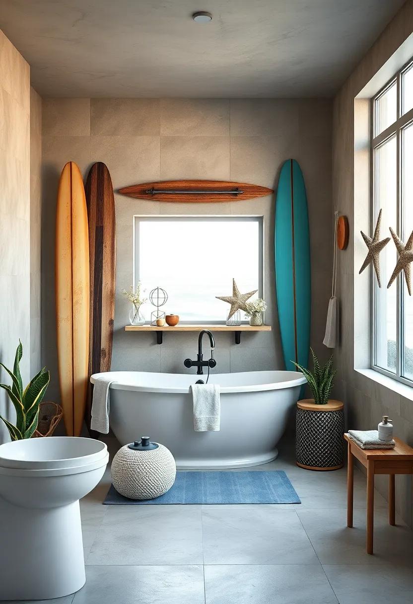 Transform your bathroom into a coastal haven by incorporating vintage surfboards and fishing gear into your decor.These unique pieces not only serve as eye-catching focal points but also carry a rich history and nostalgic charm. Consider using an old surfboard as a wall-mounted shelf or a striking canvas that tells a story of adventures on the waves. Hanging it above your bathtub creates an instant beach vibe,while allowing you to showcase decorative items like seashells,scented candles,or even coastal-inspired artwork.