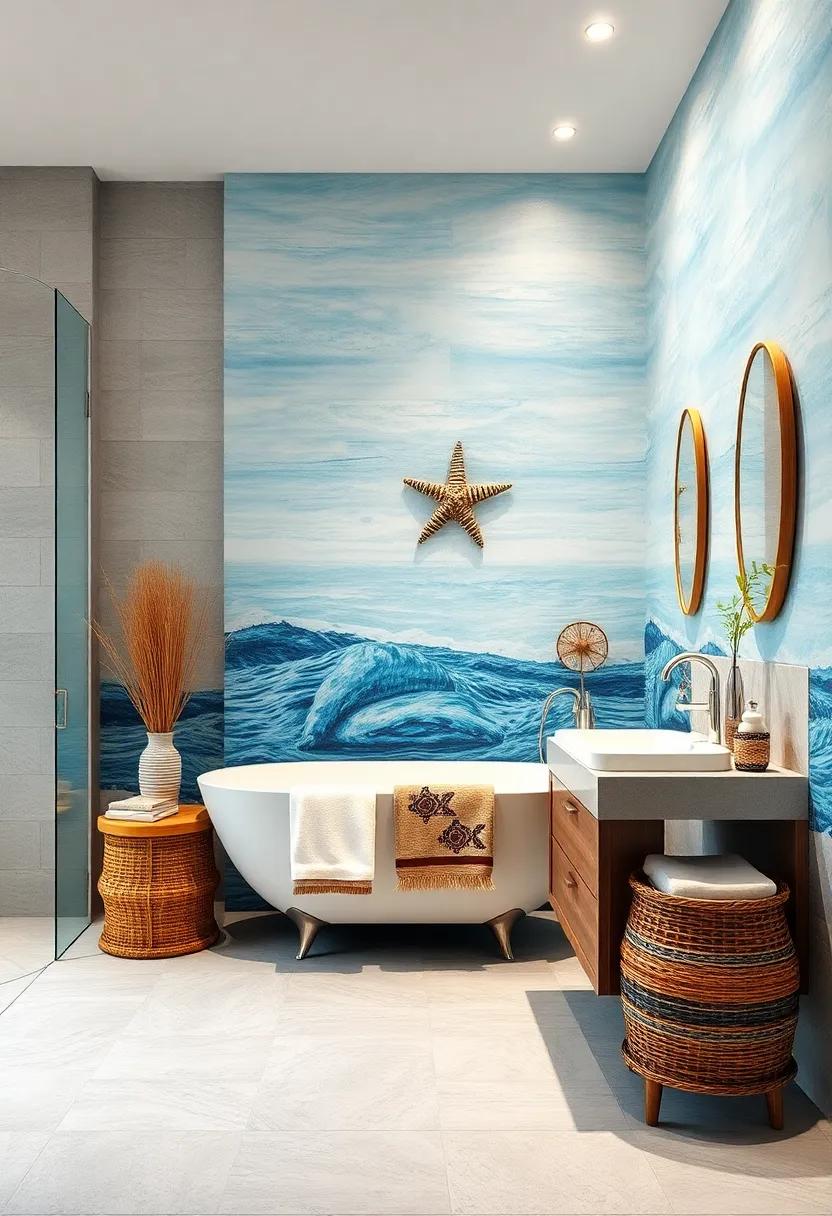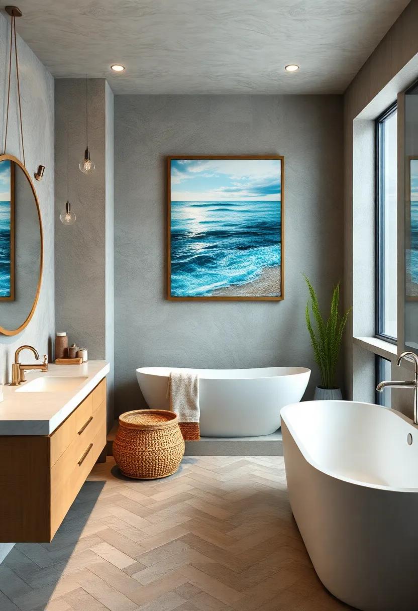Transform your bathroom into an oceanic oasis by selecting marine-inspired artwork that captures the essence of coastal living. Consider adorning your walls with vibrant canvases featuring beaches, sea life, or coastal landscapes. These pieces not only serve as a focal point but also evoke a sense of tranquility and serenity.Imagine a large seascape painting where the gentle waves seem to ripple through your space, or a stunning close-up of a sea turtle gliding gracefully through clear waters—each artwork can tell its own unique story while enhancing the overall ambiance of your bath sanctuary.