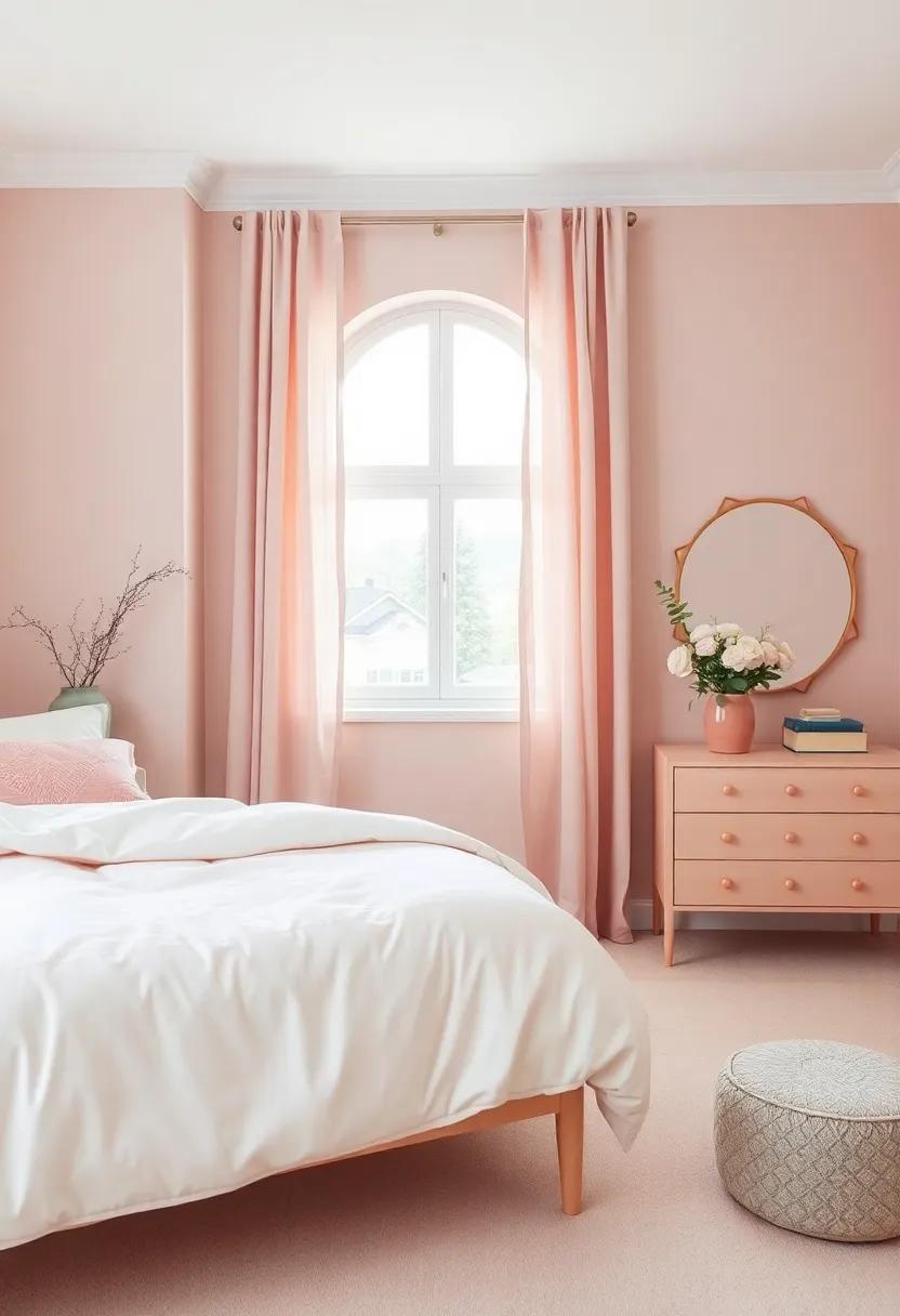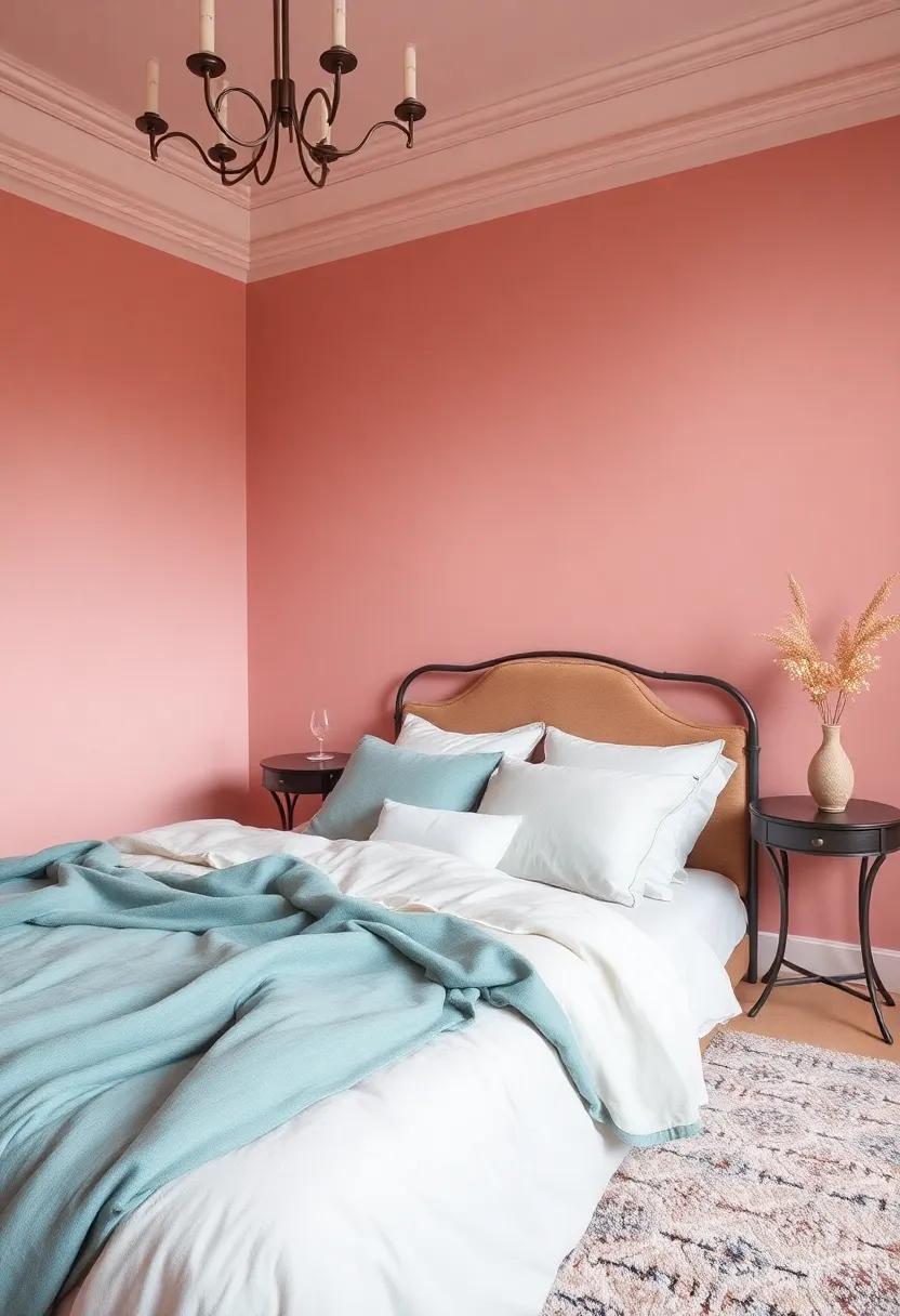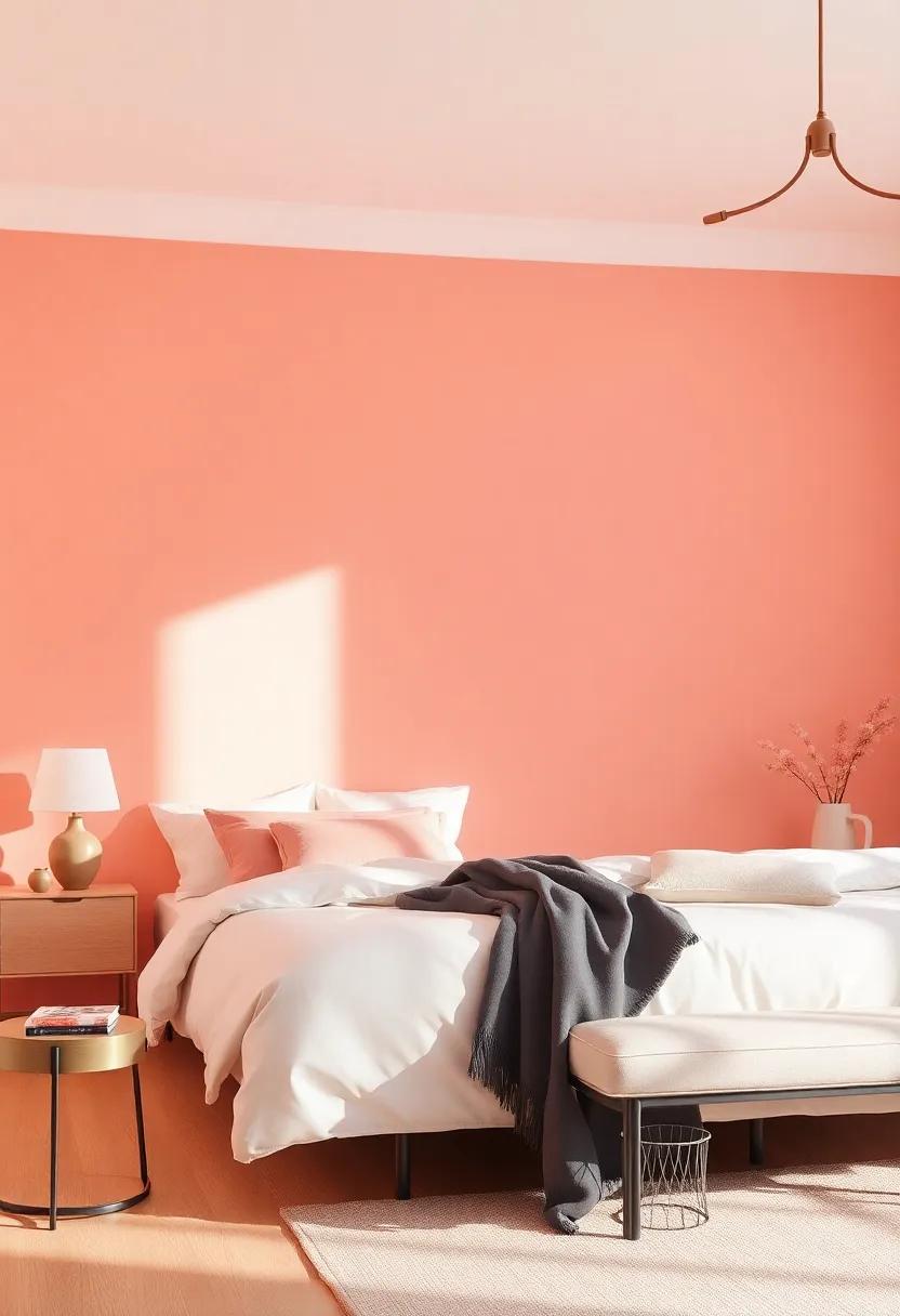 Incorporating coral blush into your bedroom design can be achieved through various methods: