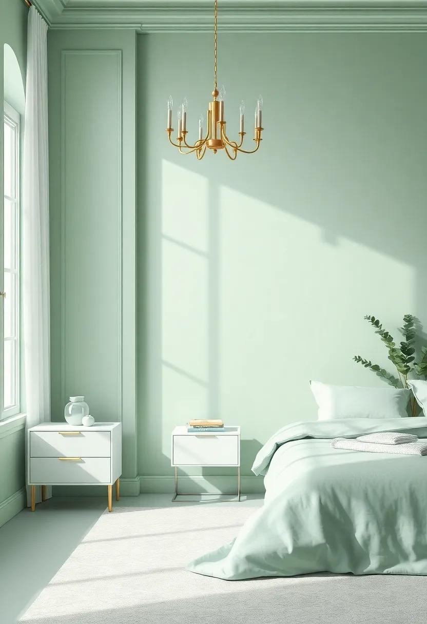 When planning your design, consider how light Seafoam interacts with light and shadows throughout the day. This color effortlessly brightens up spacious rooms while also inviting an intimate and cozy atmosphere in smaller settings. Below is a simple guide to creating the ultimate light Seafoam bedroom experience: