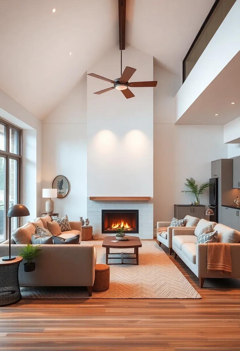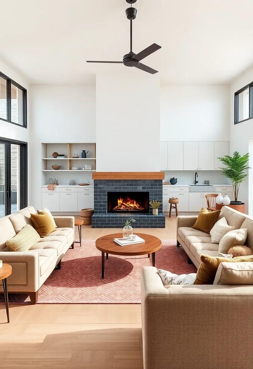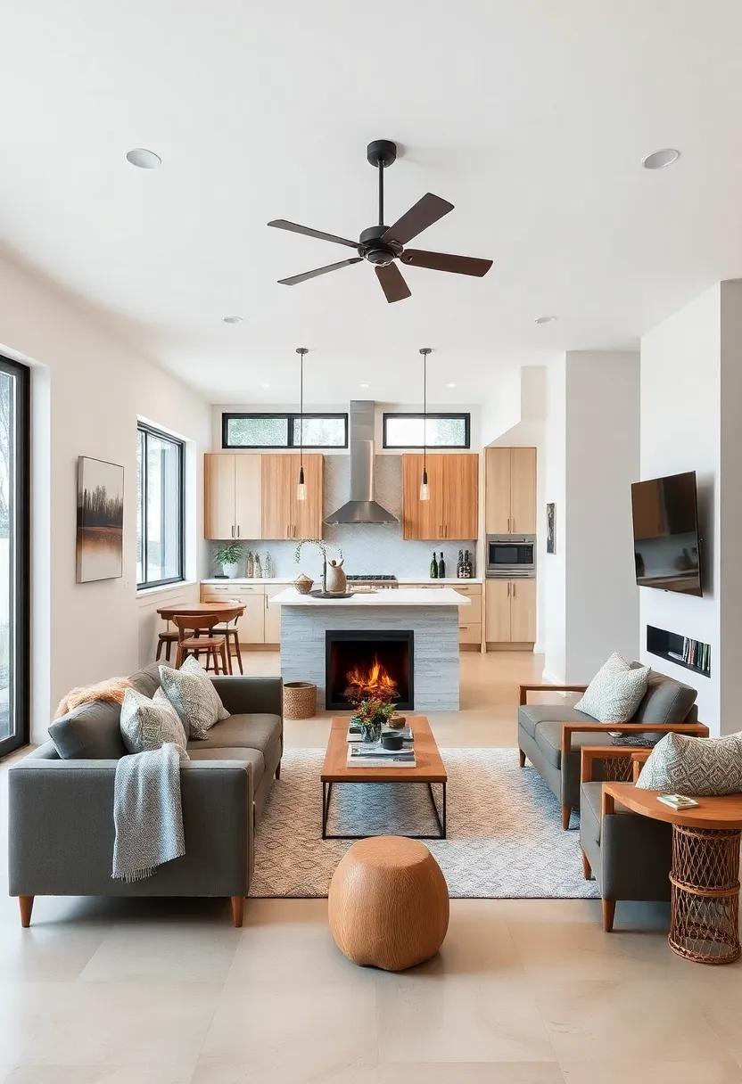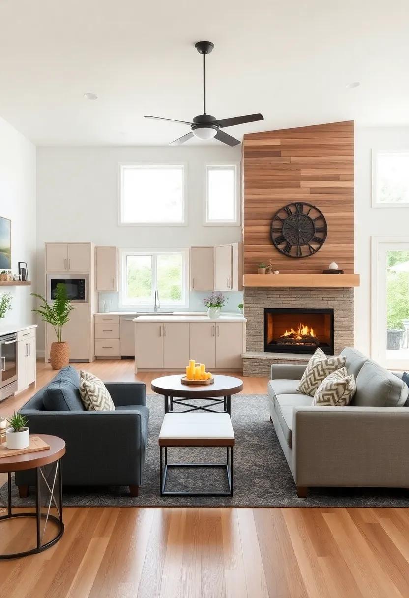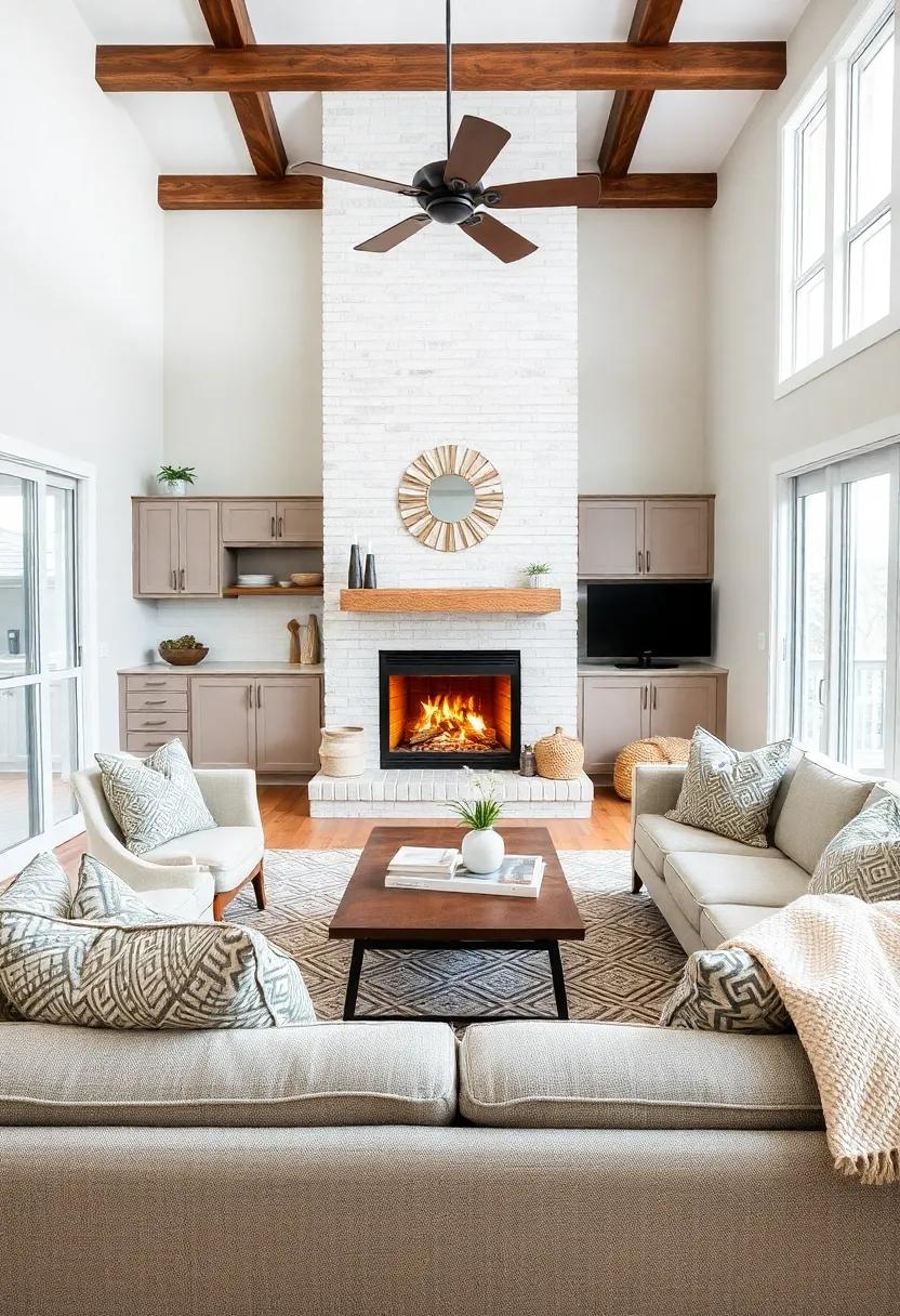 Transform the visual landscape of your open concept space by embracing the dynamic world of patterns. Begin with patterned throw pillows that can instantly elevate the coziness of your sofa. Think about vibrant geometric designs or soothing botanical prints that harmonize with your existing color palette. Layer them in various sizes to create a snug seating area that draws guests in while providing a playful sense of depth. You can also introduce wall art that features mixed patterns, such as abstract shapes or landscape scenes, which can serve as focal points that complement the warmth of your fireplace.