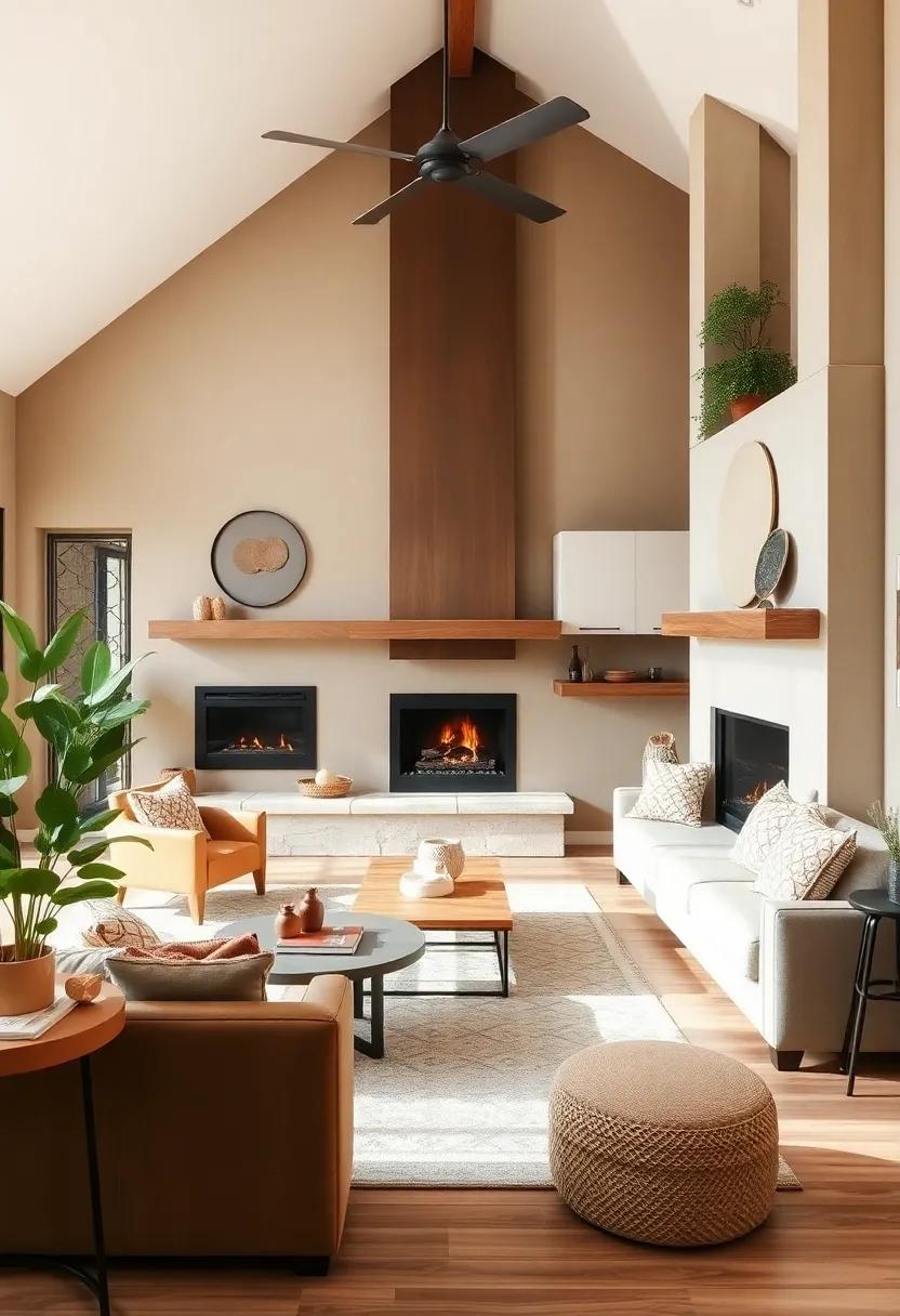 Transform the heart of your living space by making the fireplace a striking focal point. Position comfortable seating in a circular or semi-circular arrangement around the hearth, allowing for fluid conversation and an inviting atmosphere. Consider incorporating plush armchairs in warm tones, paired with soft throw blankets to enhance the cozy vibe. Layering textures such as woven baskets, textured pillows, and soft rugs can also help ground the area and create a harmonious flow that draws the eye toward the flames.
