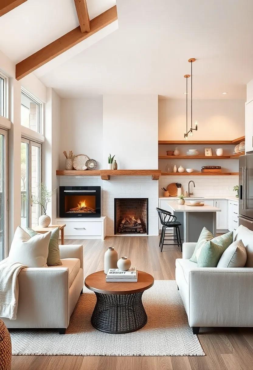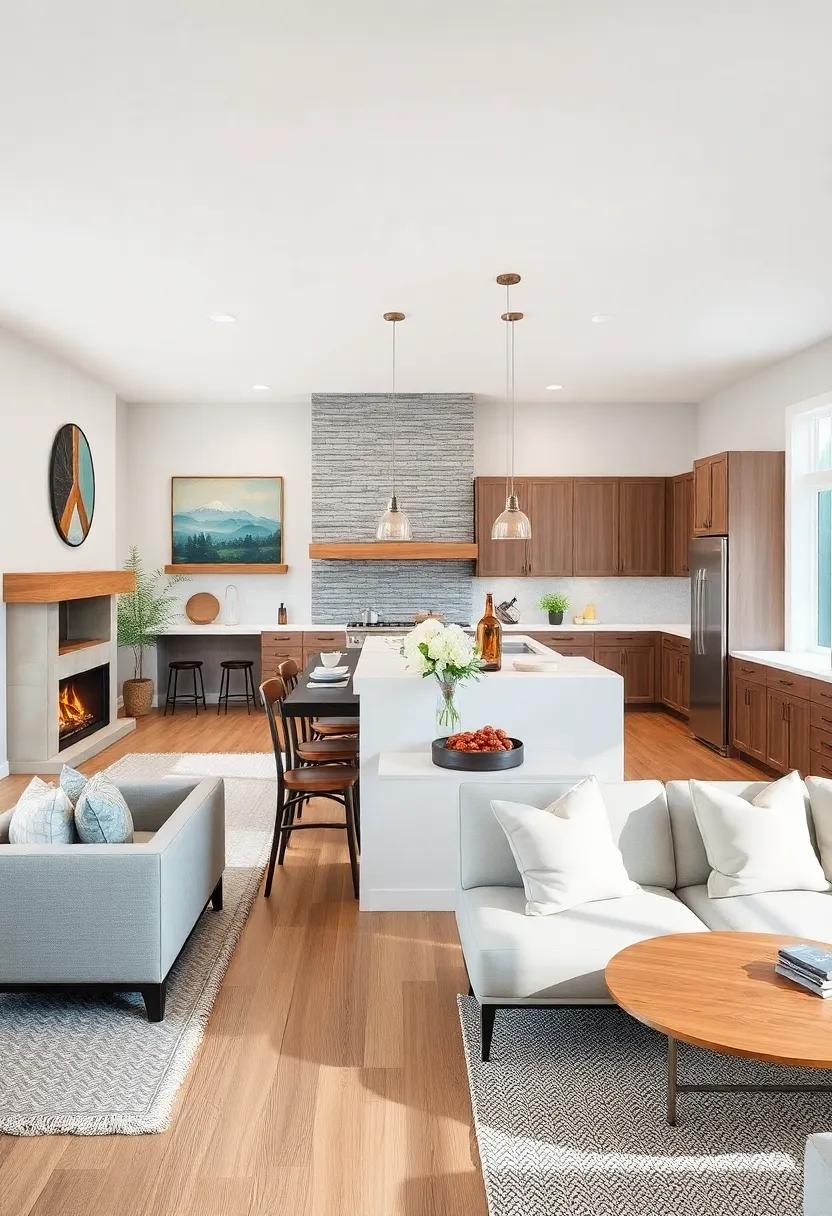 Creating a warm and inviting atmosphere in an open concept design begins with the selection of a thoughtful color palette. Consider using earthy tones that echo the natural elements of your home. Shades like soft beige, warm taupe, and muted greens can beautifully connect the kitchen and living area, promoting visual fluidity. Pair these colors with rich, accent shades such as deep blue or forest green to add depth and character without overwhelming the space. this will not only create a cozy vibe but also allow the fireplace to stand out as a focal point.