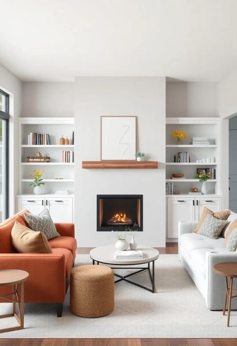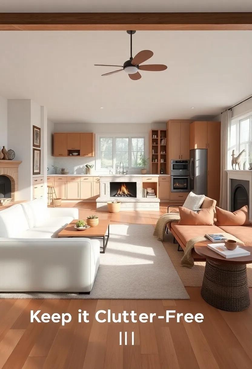 Consider implementing simple streamlined design principles to enhance openness. Utilize multi-functional furniture pieces that serve both style and storage purposes, such as ottomans with hidden compartments or coffee tables that provide additional shelf space. Hang open shelving to showcase decorative items, ensuring they don’t overcrowd the area. Introduce a minimalistic color palette to further promote a serene vibe—soft neutral tones can visually expand the space while accentuating the warmth of your fireplace. Regularly revisiting these strategies will not only maintain cleanliness but will also reinforce the inviting character of your home.
