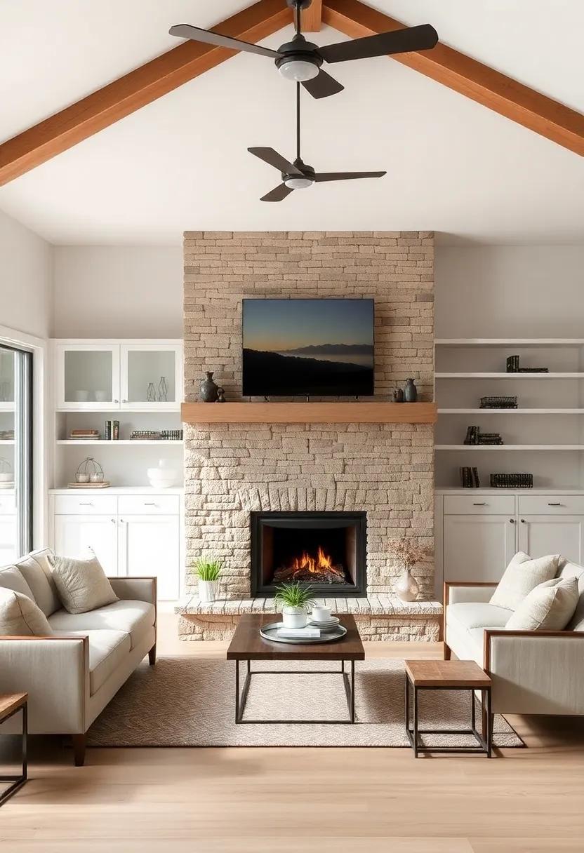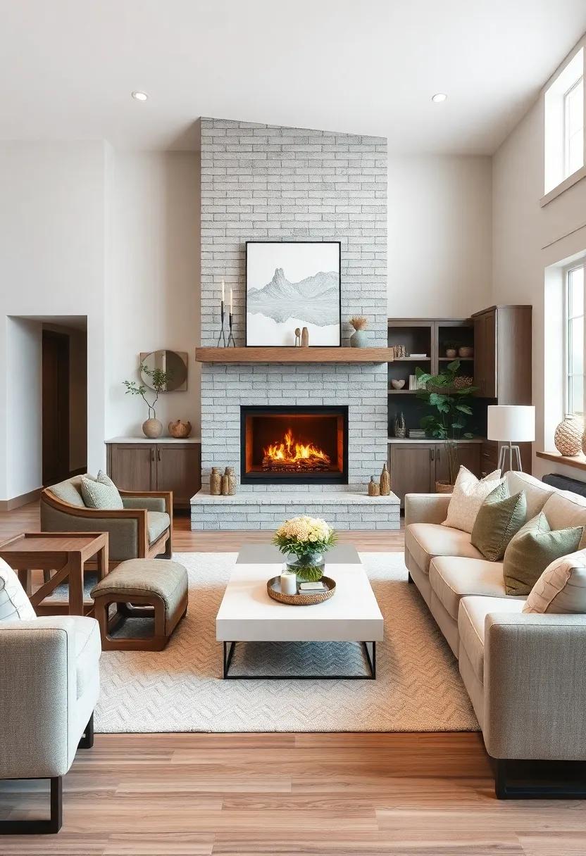 Incorporating rustic stone or brick around your fireplace is a sure-fire way to infuse your open concept living space with warmth and character. Texture plays a pivotal role in crafting a cozy ambiance, and nothing quite compares to the natural feel of stone or the timeless appeal of brick. By opting for a stone veneer or exposed brick, you not only create a standout feature but also establish a harmonious connection with the earthy tones found throughout your home. These materials bring an organic element that beautifully contrasts with modern furnishings, making your living area feel inviting and grounded.
