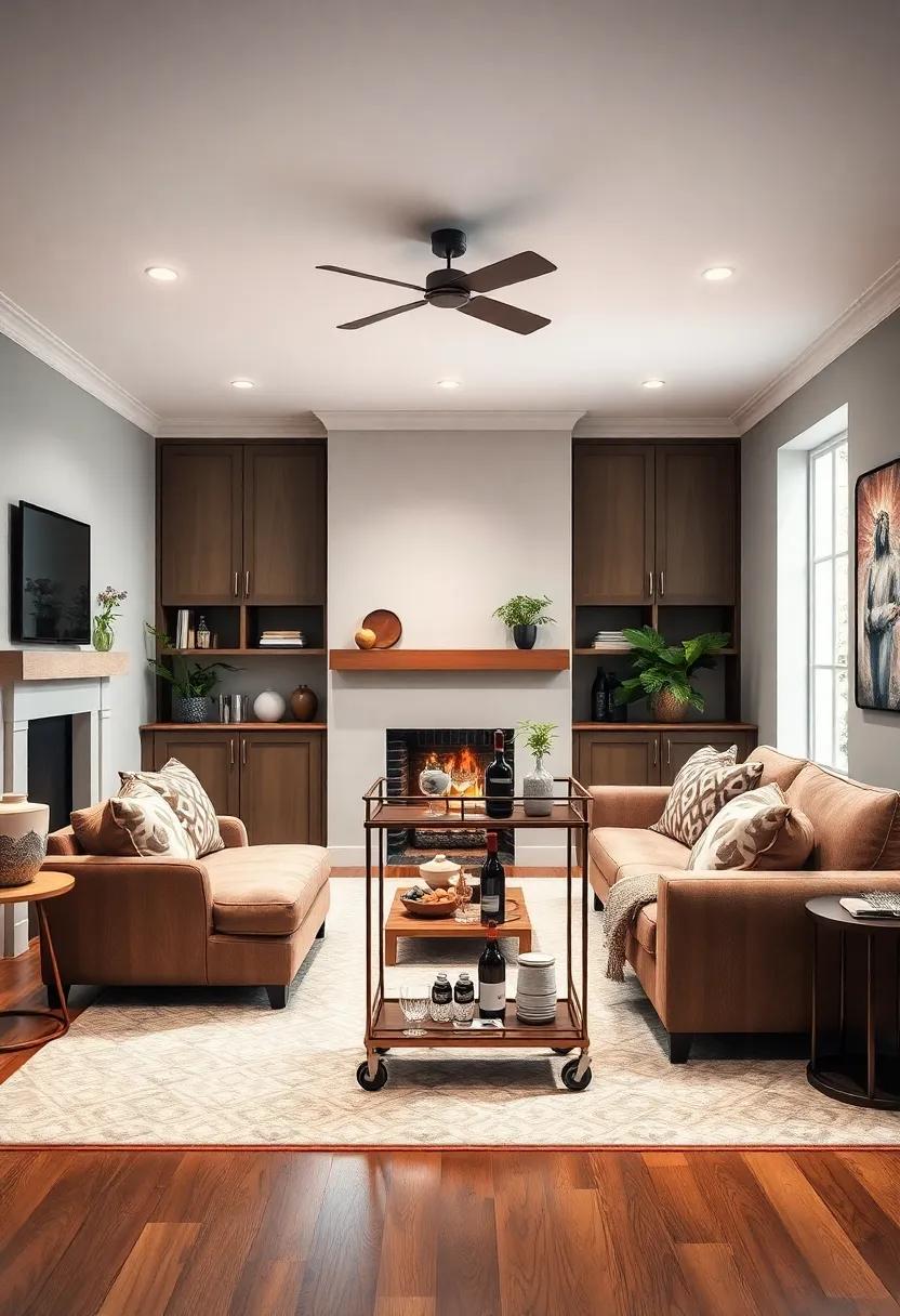 Add a Bar Cart: incorporate a stylish bar cart or cabinet for drinks, making it easy to entertain and provide a creative focal point in the room
