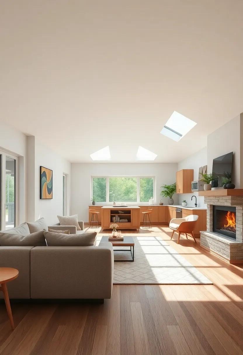 Incorporate Natural Light: Maximize windows or skylights to let in sunlight, which enhances the welcoming ambiance of the living-kitchen area