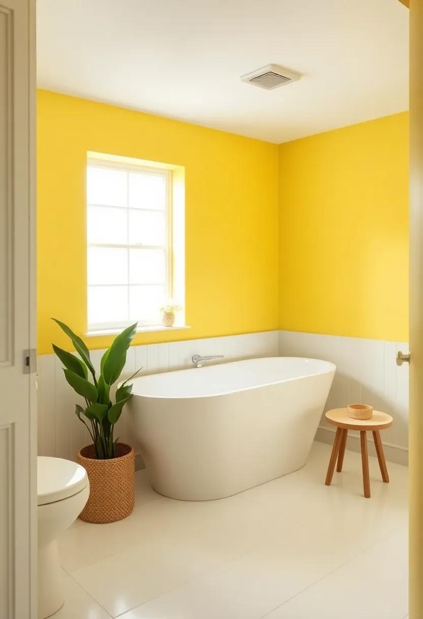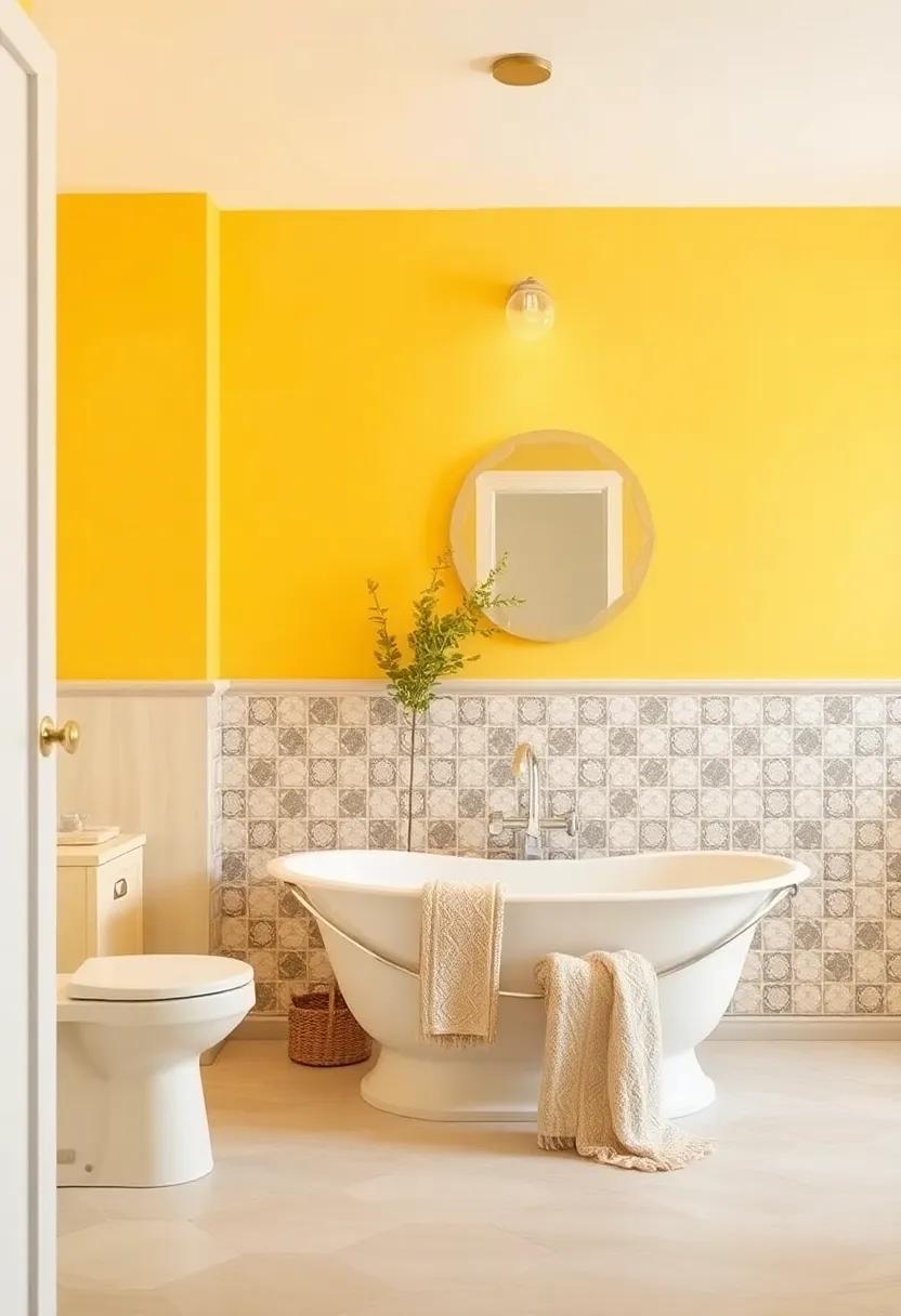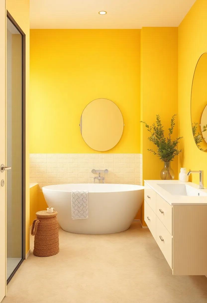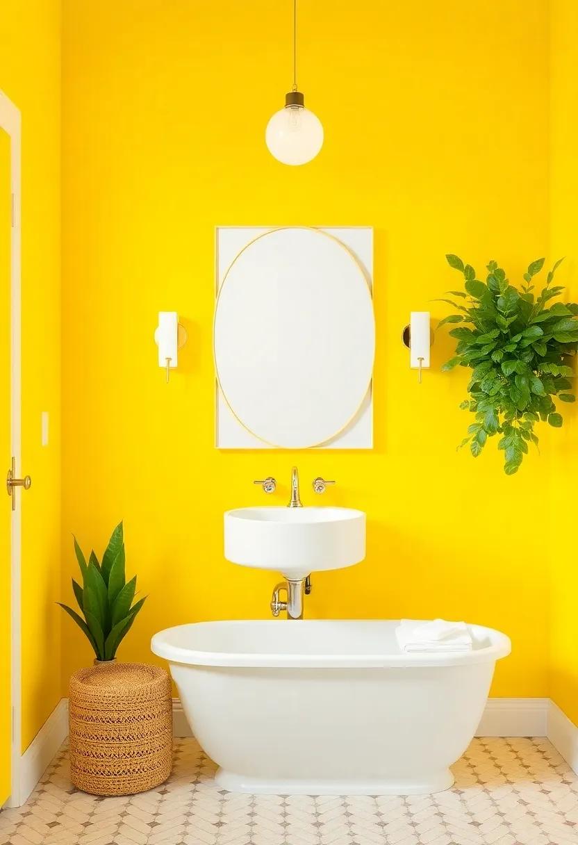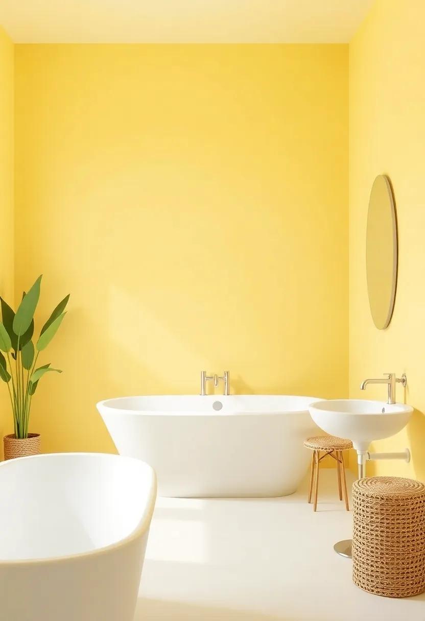 For an even more vibrant boost, think about integrating pops of color through bath mats or shower curtains in deeper shades of yellow or contrasting blues. Creating a cohesive color story will make your bathroom feel like a personal sanctuary—a joyful oasis where every visit is a party of brightness.