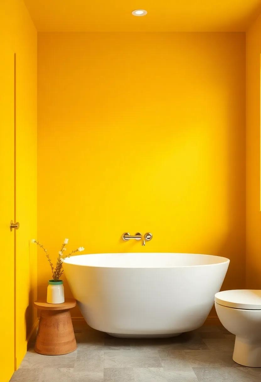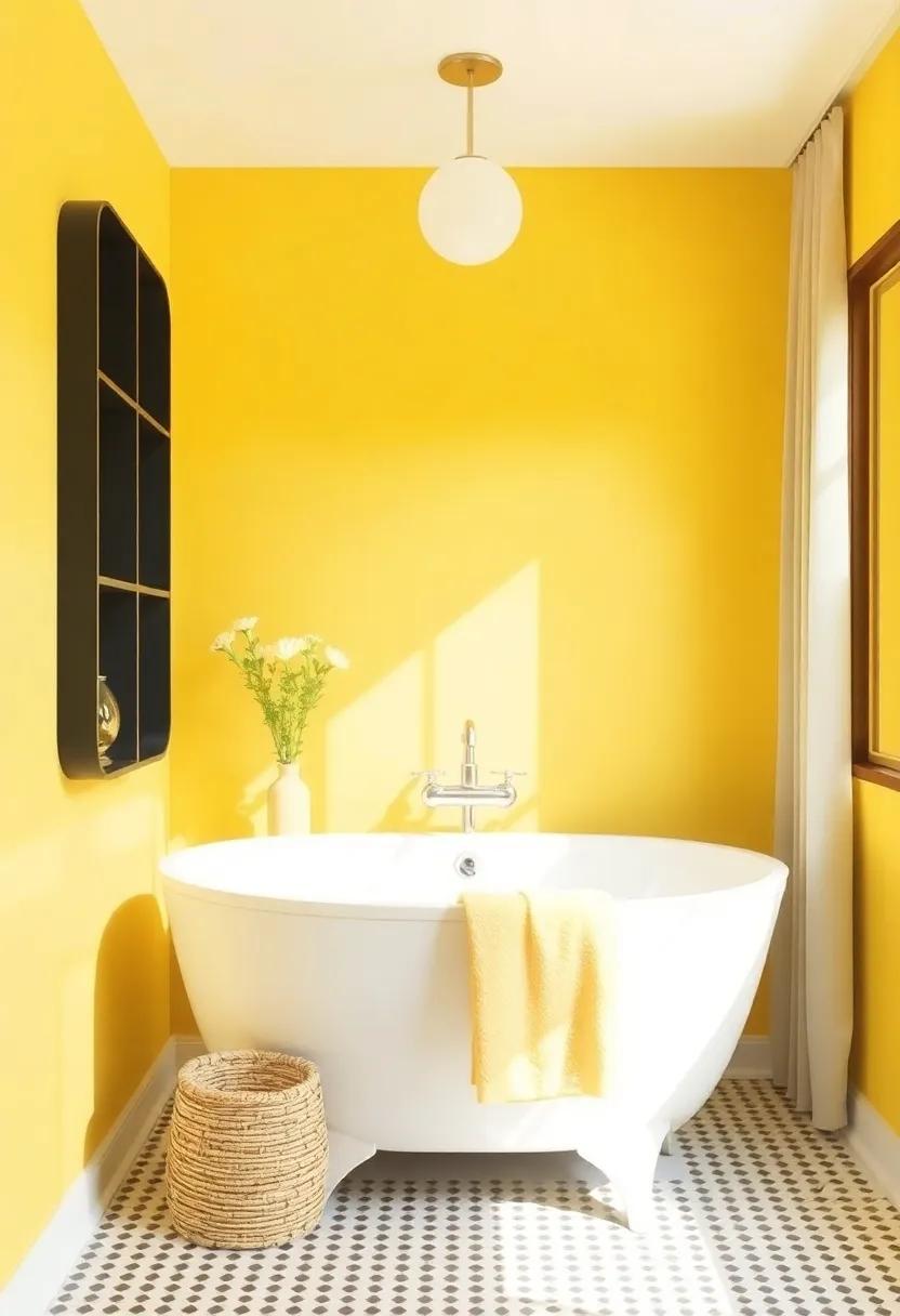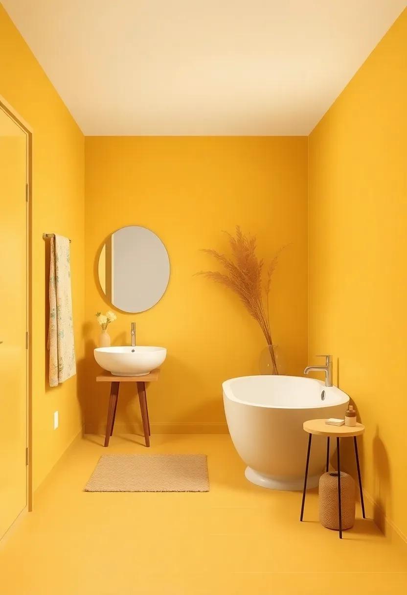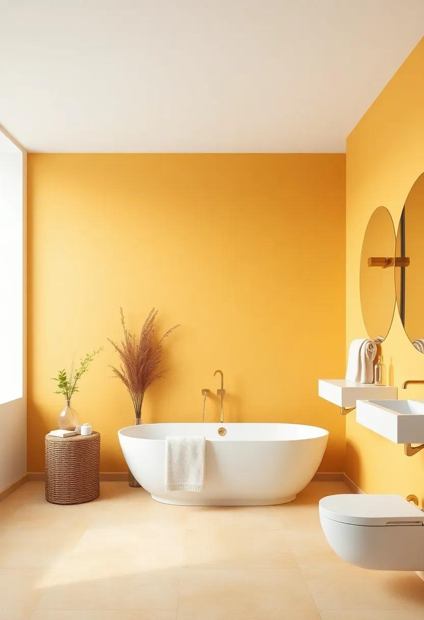 Channel the charm of earthy tones with a splash of mustard, a shade that strikes a perfect balance between modern elegance and eclectic flair. This vibrant hue can act as a focal point in any bathroom, infusing it with personality while together exuding sophistication. Embrace the boldness of mustard by pairing it with crisp white fixtures and natural textures like wood or stone.This combination not only amplifies the warmth of the color but also cultivates a serene atmosphere that invites relaxation, making your bathing experience feel like a luxurious retreat.