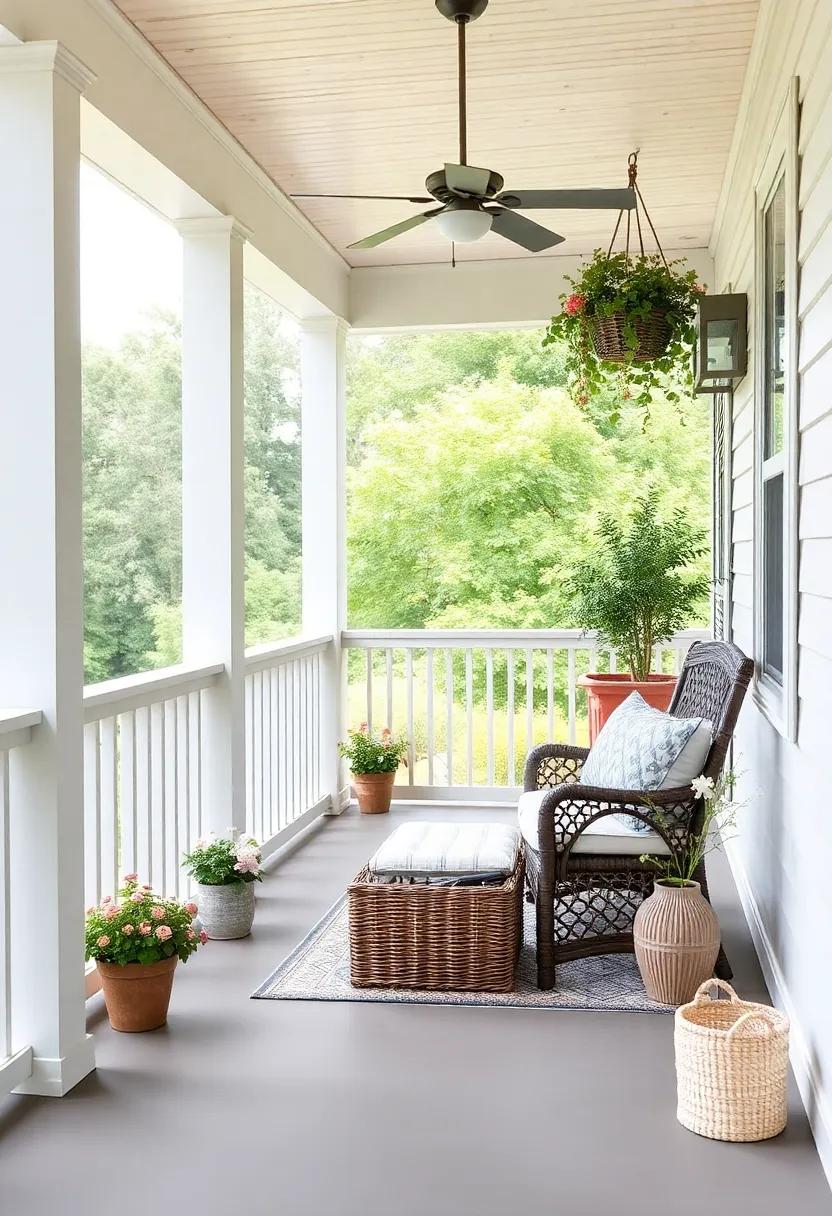 - Accent pieces: Consider ceramic pots in soft blue for plants, enhancing the natural aspect of the porch.
