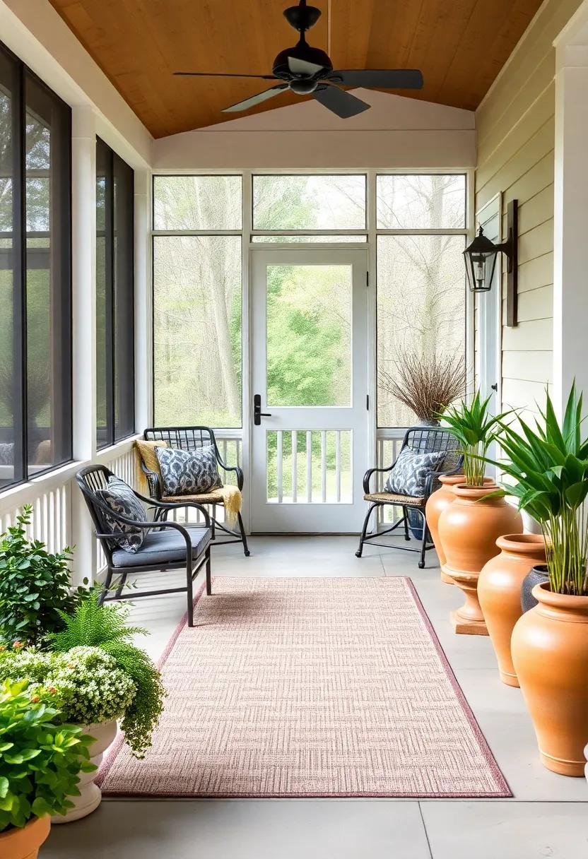 Indoor Plants Galore: Bring the outdoors in with an assortment of potted plants that not only purify the air but also add a touch of greenery to your screened porch