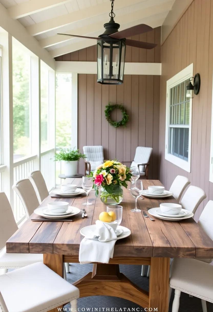 By thoughtfully selecting pieces that reflect this charming palette, your screened porch will embody a tranquil retreat that celebrates the beauty of farmhouse living.