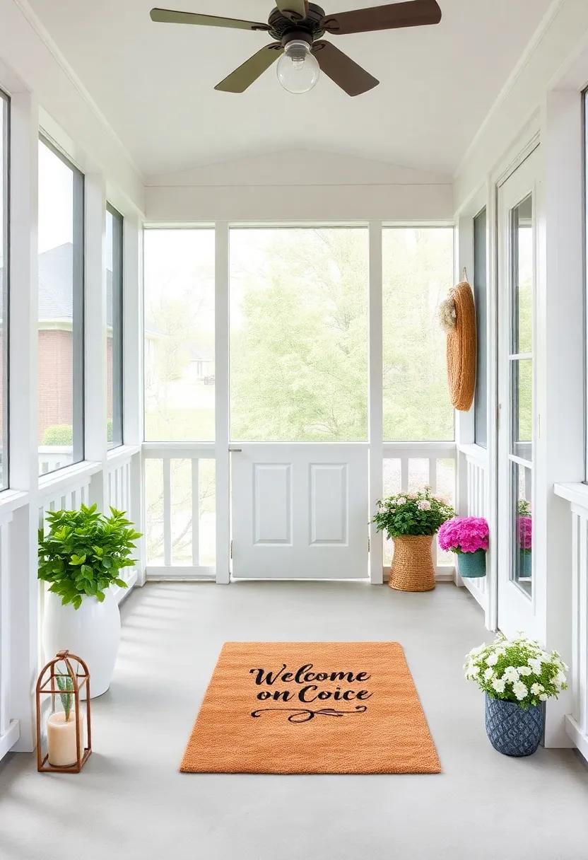 Inviting Welcome Mats: Choose a welcoming doormat with an inspirational quote or seasonal design to greet guests and set the mood for your farmhouse escape