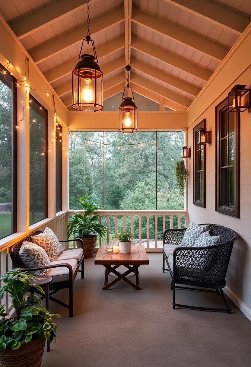 Transform your screened porch into a soothing retreat by incorporating rustic lanterns and twinkling fairy lights. Hanging lanterns with vintage charm can add a timeless element, complementing the natural surroundings while providing just enough glow for intimate evenings. Choose materials like weathered wood or iron for added texture,and cluster them at varying heights to create visual interest. stringing fairy lights along the beams or draping them around railings can enhance the magical atmosphere, making your outdoor living space feel like a fairy tale. Opt for warm white lights for a cozy vibe or colorful options to inject a playful energy into your gatherings.