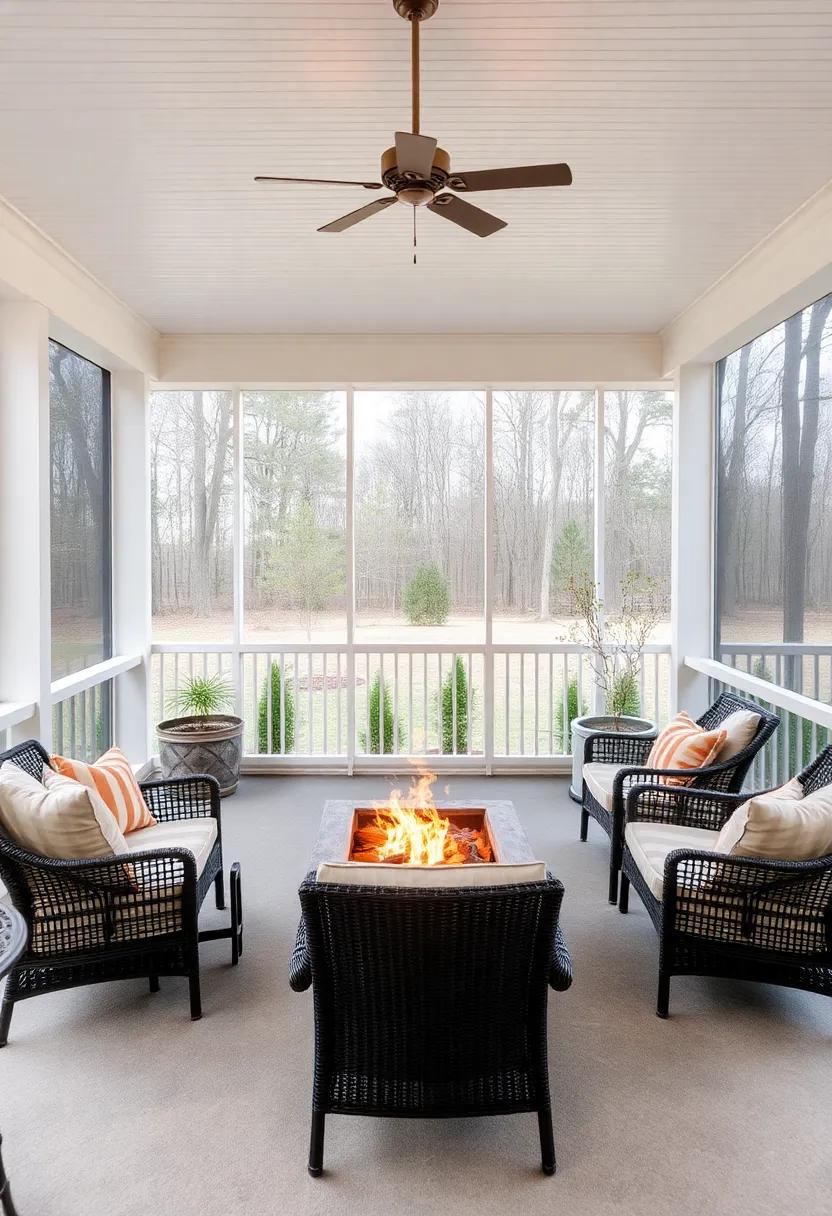 Screened-In Fire Pit: Create a cozy gathering spot by adding a fire pit surrounded by comfortable seating, perfect for chilly evenings