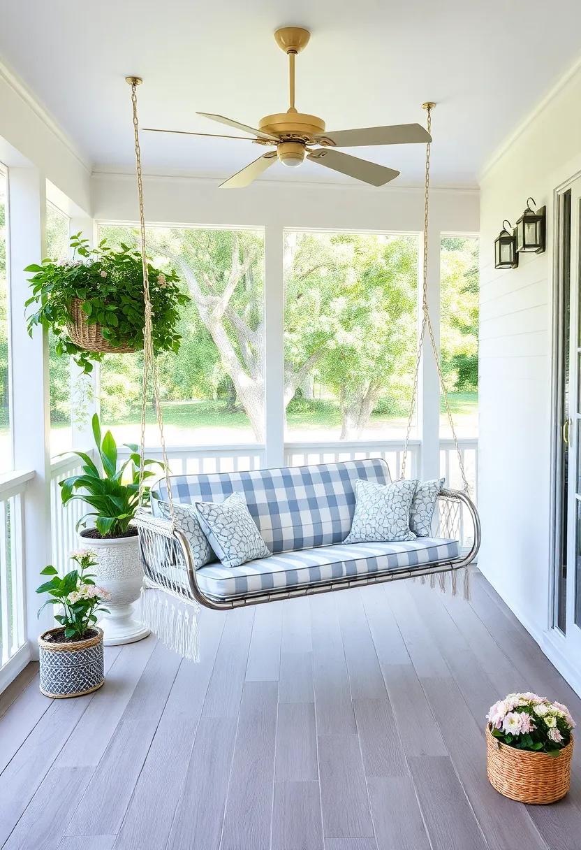 Imagine sinking into a cozy hammock as the warm summer breeze gently rocks you back and forth, or feeling the joy of swinging in a beautifully crafted swing that cradles you in comfort. Adding these elements to your screened porch not only elevates its charm but also offers an irresistible invitation to unwind and soak in nature. Consider choosing from a variety of materials and styles that reflect your personality and complement your farmhouse aesthetic. Think rustic wooden swings adorned with plush cushions or vibrant, colorful hammocks that echo the vibrant hues of summer.