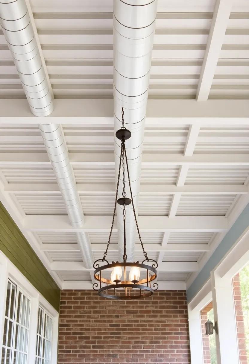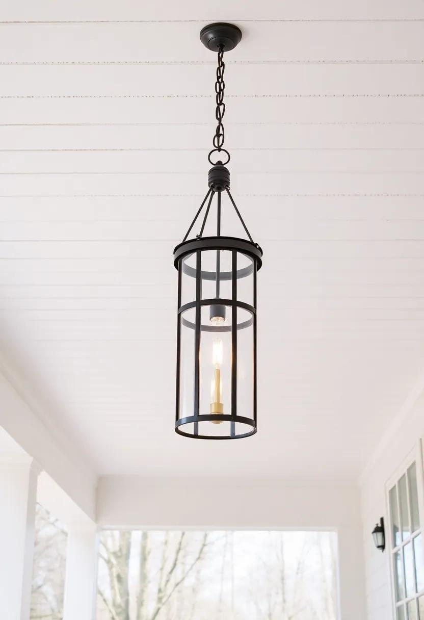 Celebrate simplicity with a white beadboard ceiling and a classic lantern chandelier, ideal for brightening up even the gloomiest days