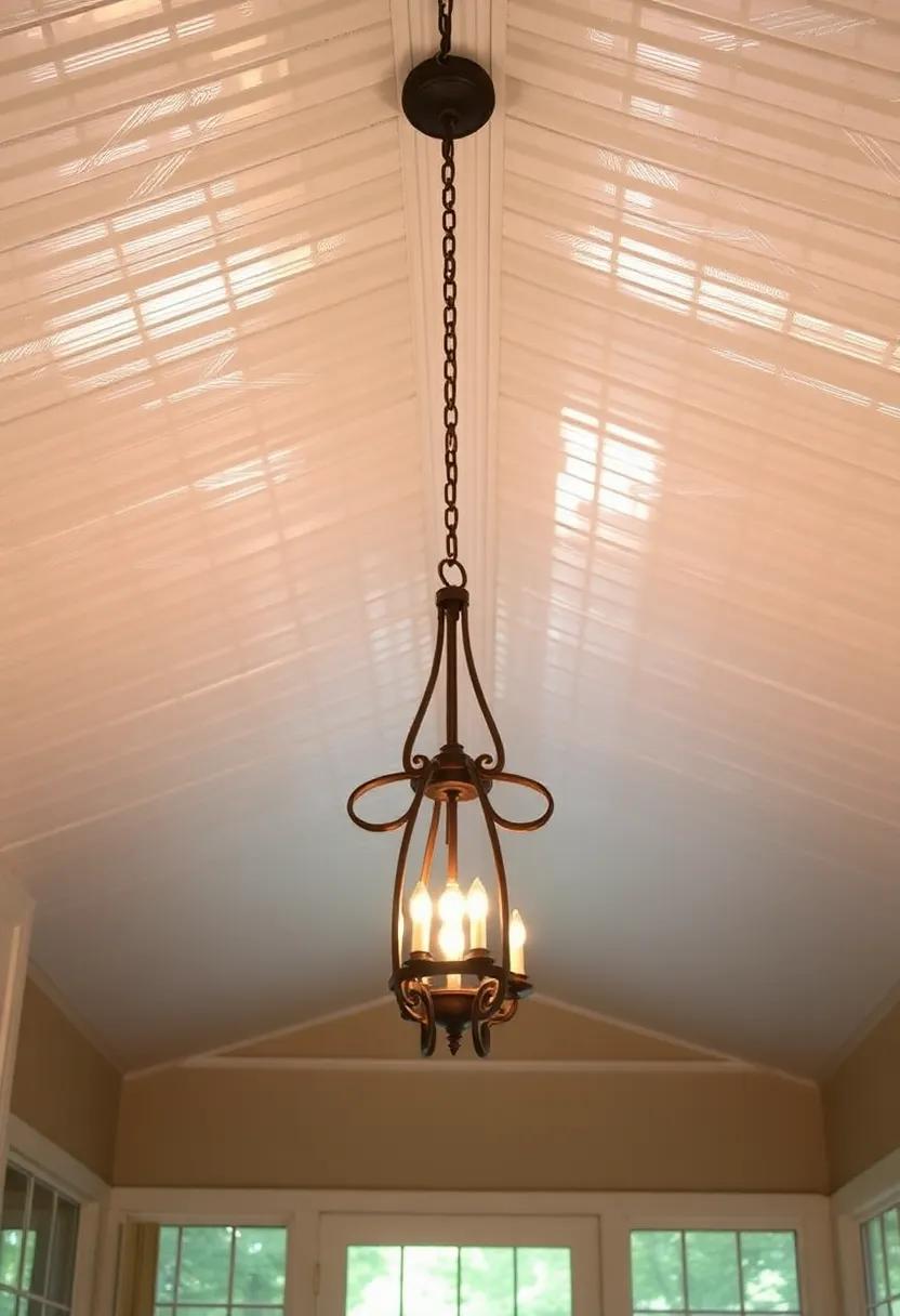 Soft, pastel colors can transform your screened porch ceiling into a serene haven, fostering a peaceful connection with the outdoors. Shades like lavender, powder blue, and pale mint create an inviting backdrop that encourages relaxation. When paired with an elegant antique chandelier, the ceiling becomes the focal point of the space, inviting warmth and charm. The delicate interplay of light and color not only enhances the visual aesthetic but also evokes a nostalgic ambiance, reminiscent of tranquil getaways. Such a combination makes for a perfect setting to unwind with a book or share moments with loved ones.