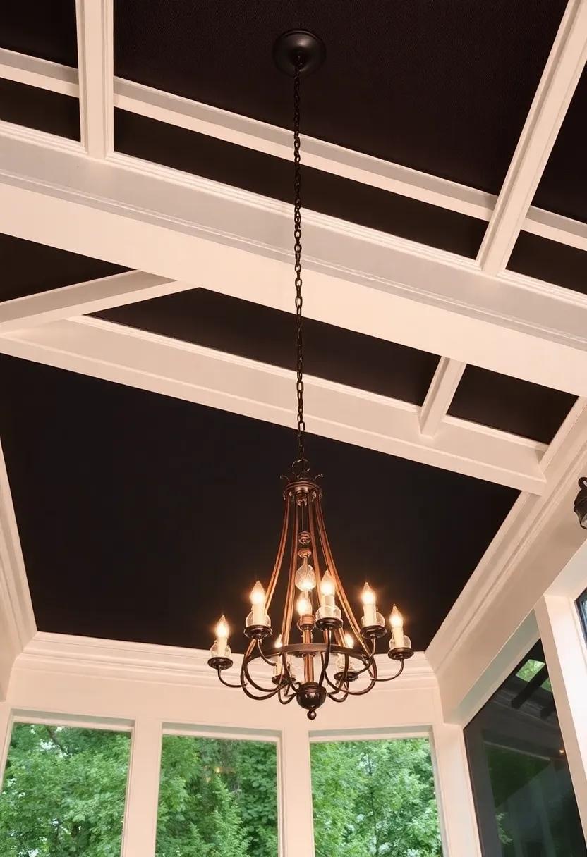 Transform your outdoor dining experience by opting for a captivating black ceiling that adds a sense of depth and intrigue to your screened porch. This bold choice creates a striking contrast, allowing for a sophisticated ambiance that feels both intimate and inviting. To further enhance this dramatic effect, a stunning gold chandelier becomes the focal point of the space, casting a warm glow and elevating the overall aesthetic. Its intricate design reflects light beautifully,adding a touch of luxury that resonates with discerning tastes.