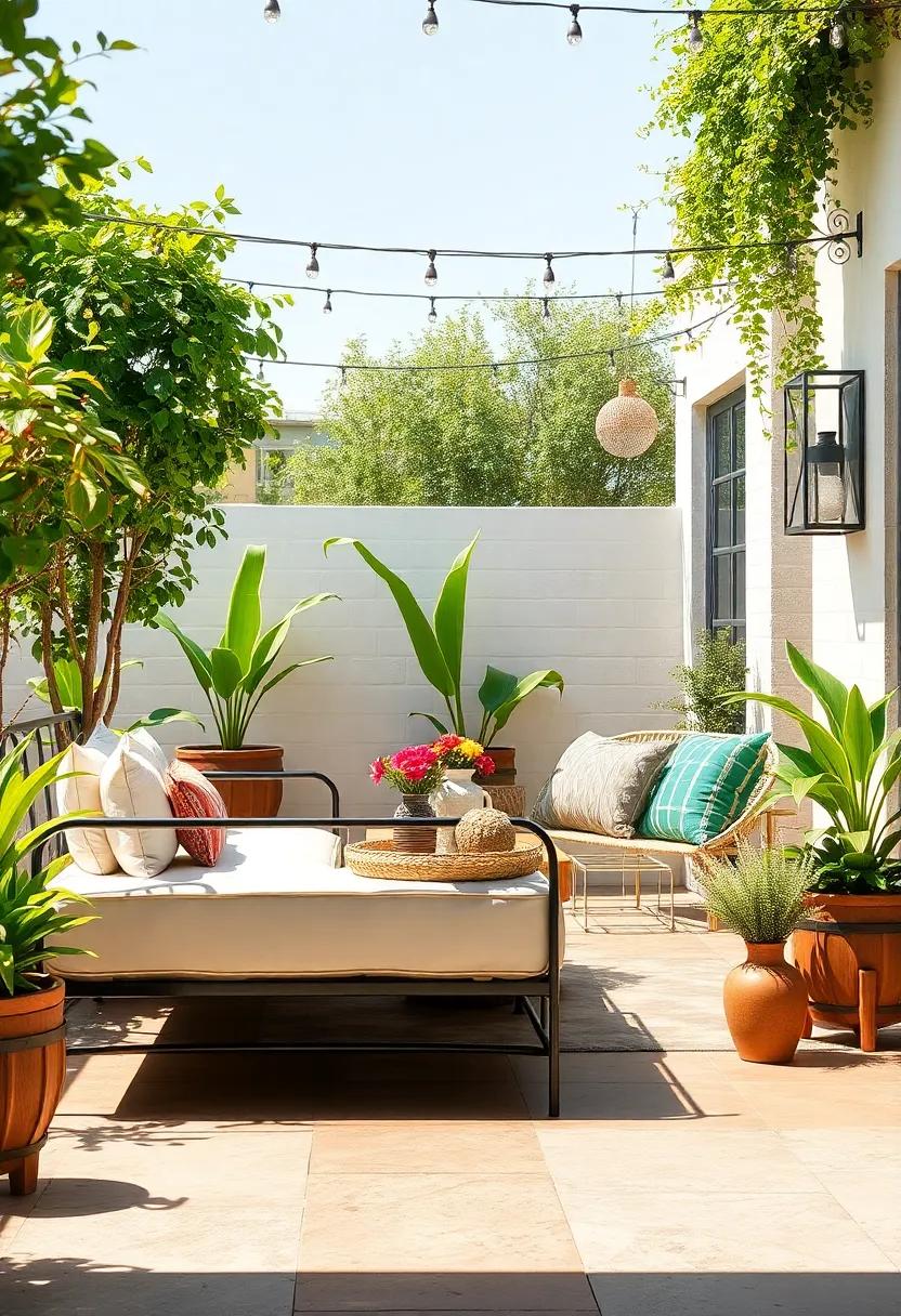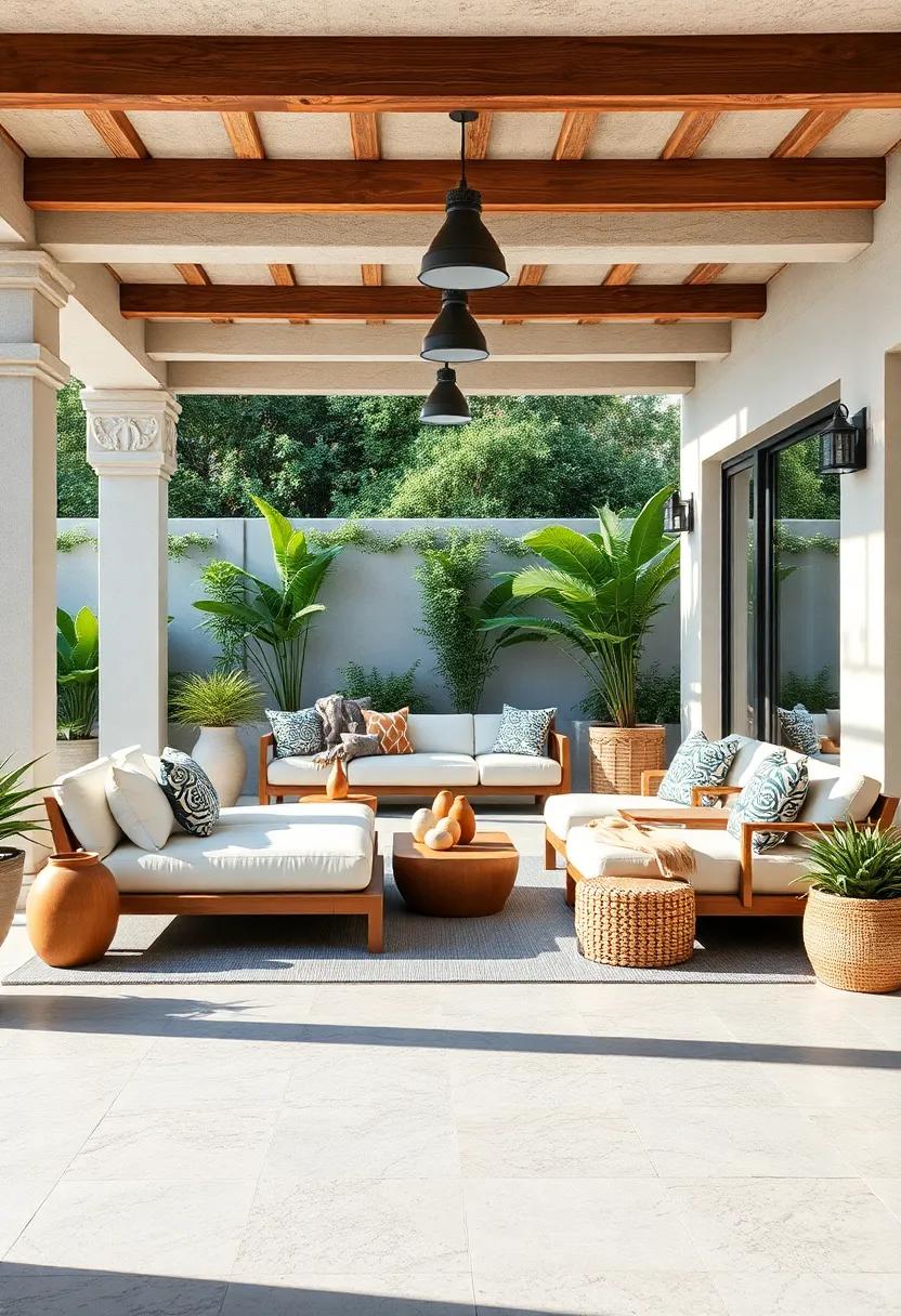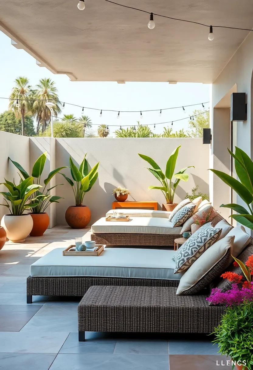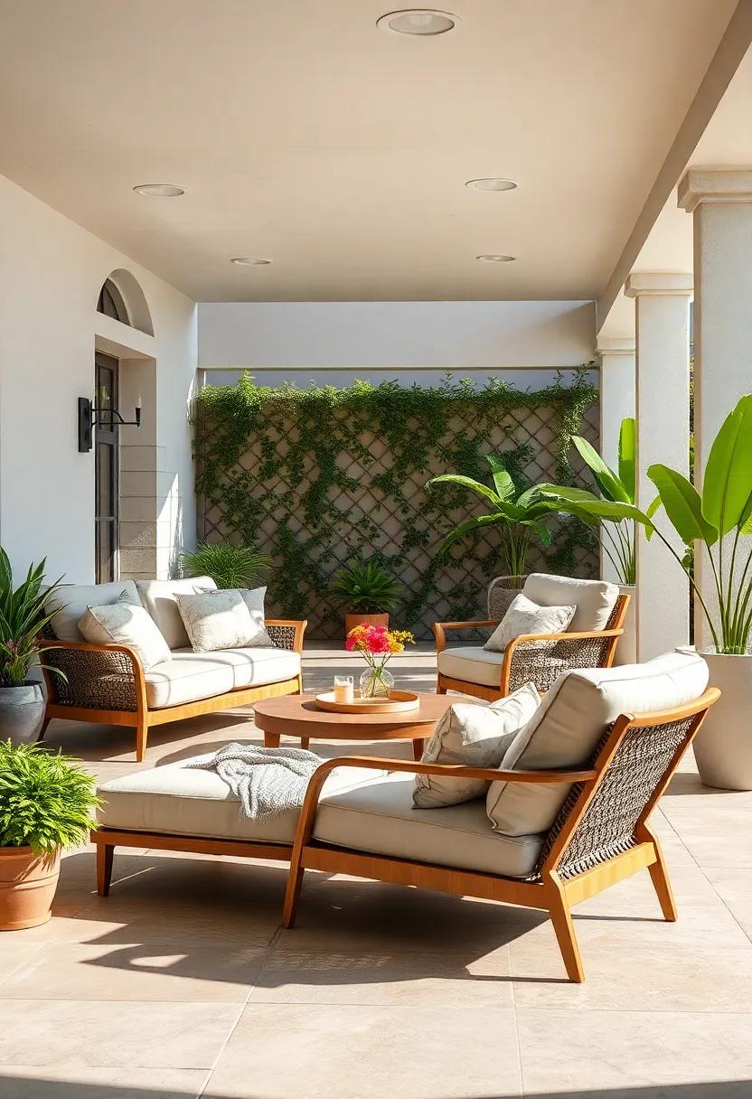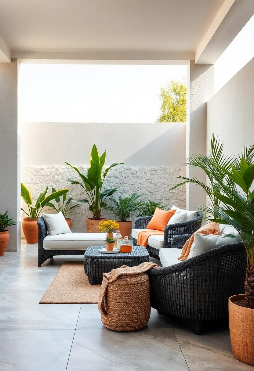 Integrating natural elements is key to achieving this coastal allure. Think about incorporating woven rugs and reed partitions that provide both privacy and aesthetics. The use of natural wood finishes for tables and chairs harmonizes beautifully with the earthy color palette. Consider a durable, weather-resistant coffee table adorned with unique terracotta planters and succulents to bring life to your space.To complete this Mediterranean-inspired retreat, hang string lights overhead for a starry atmosphere that will make evenings outside an enchanting experience. With the right blend of style and comfort, your patio will be the ultimate relaxation destination.