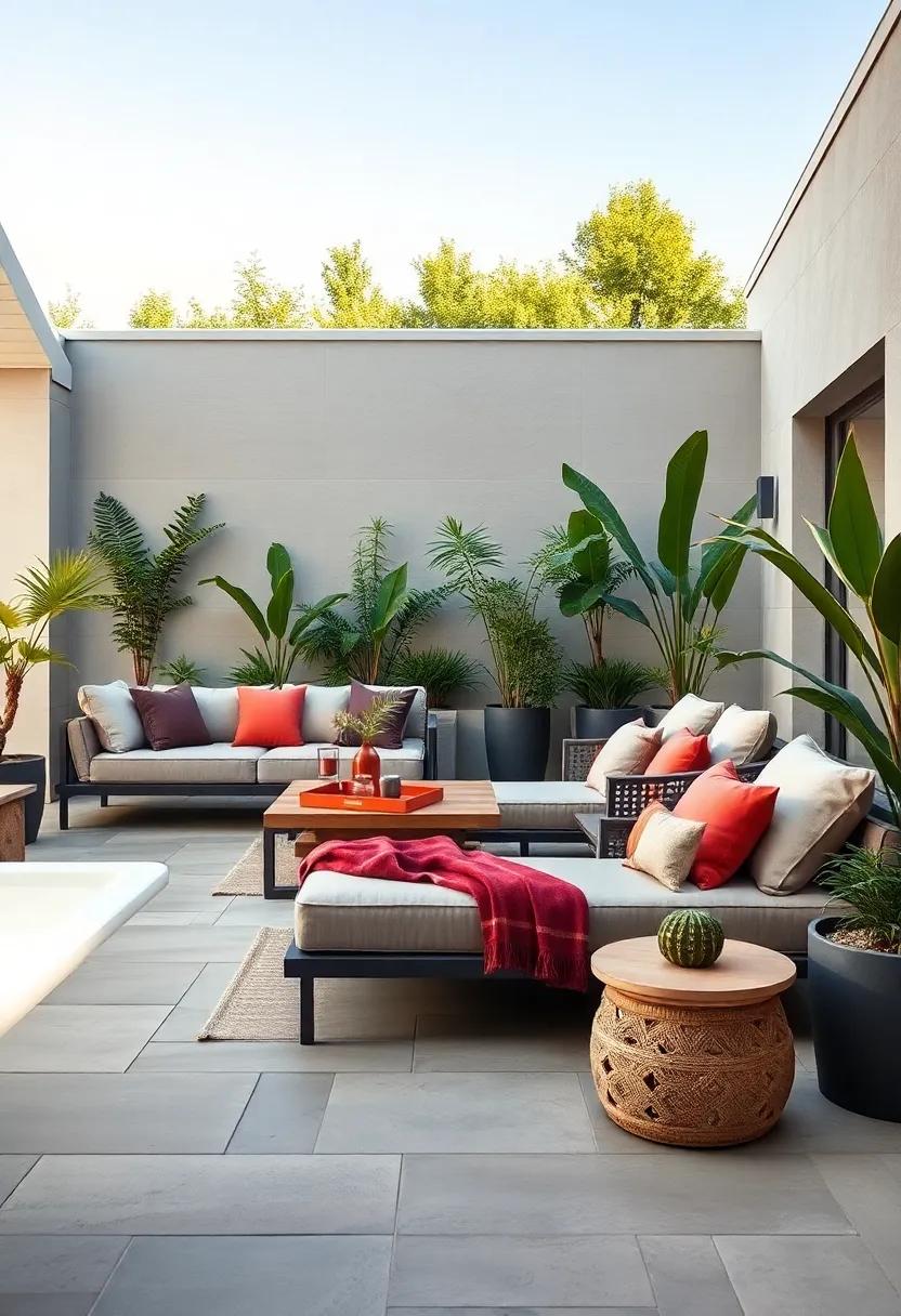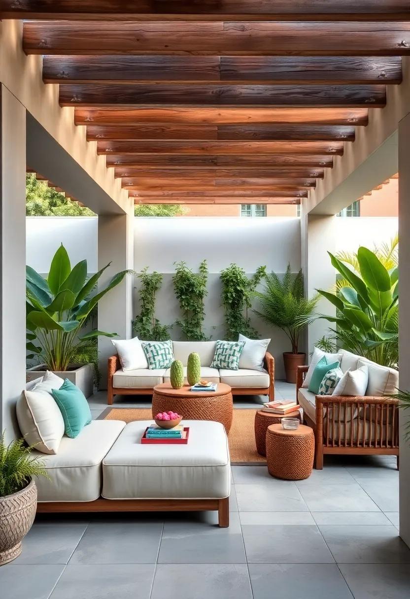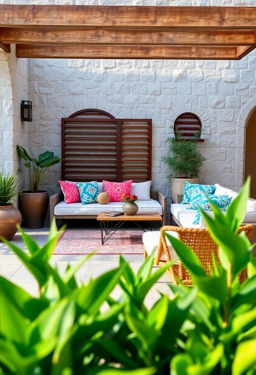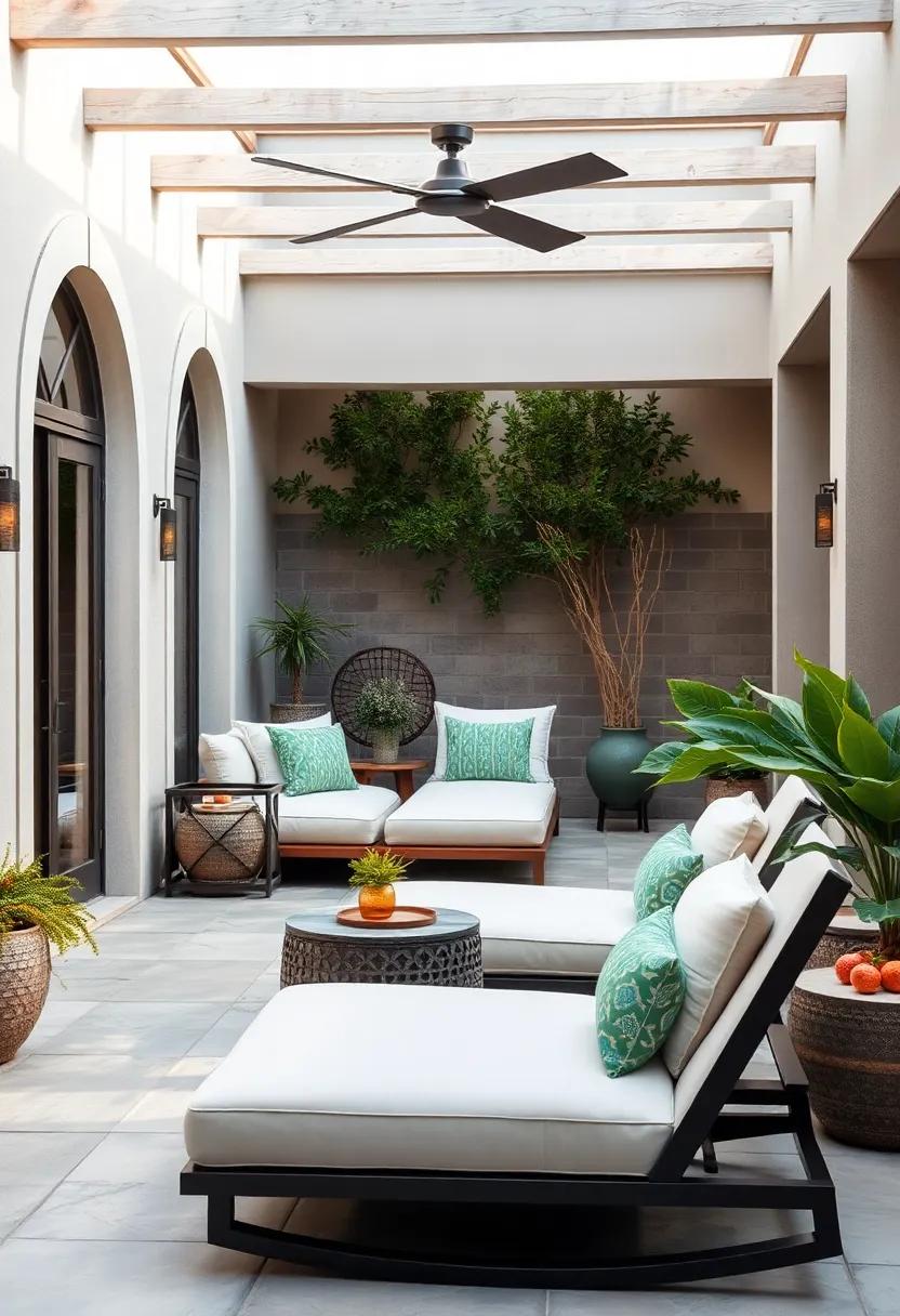 Integrating natural elements is key to achieving this coastal allure. Think about incorporating woven rugs and reed partitions that provide both privacy and aesthetics. The use of natural wood finishes for tables and chairs harmonizes beautifully with the earthy color palette. Consider a durable, weather-resistant coffee table adorned with unique terracotta planters and succulents to bring life to your space.To complete this Mediterranean-inspired retreat, hang string lights overhead for a starry atmosphere that will make evenings outside an enchanting experience. With the right blend of style and comfort, your patio will be the ultimate relaxation destination.