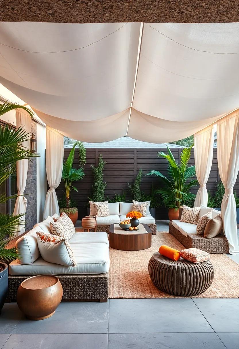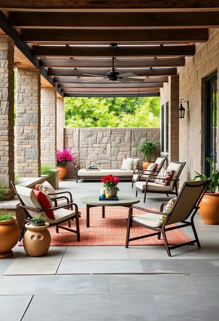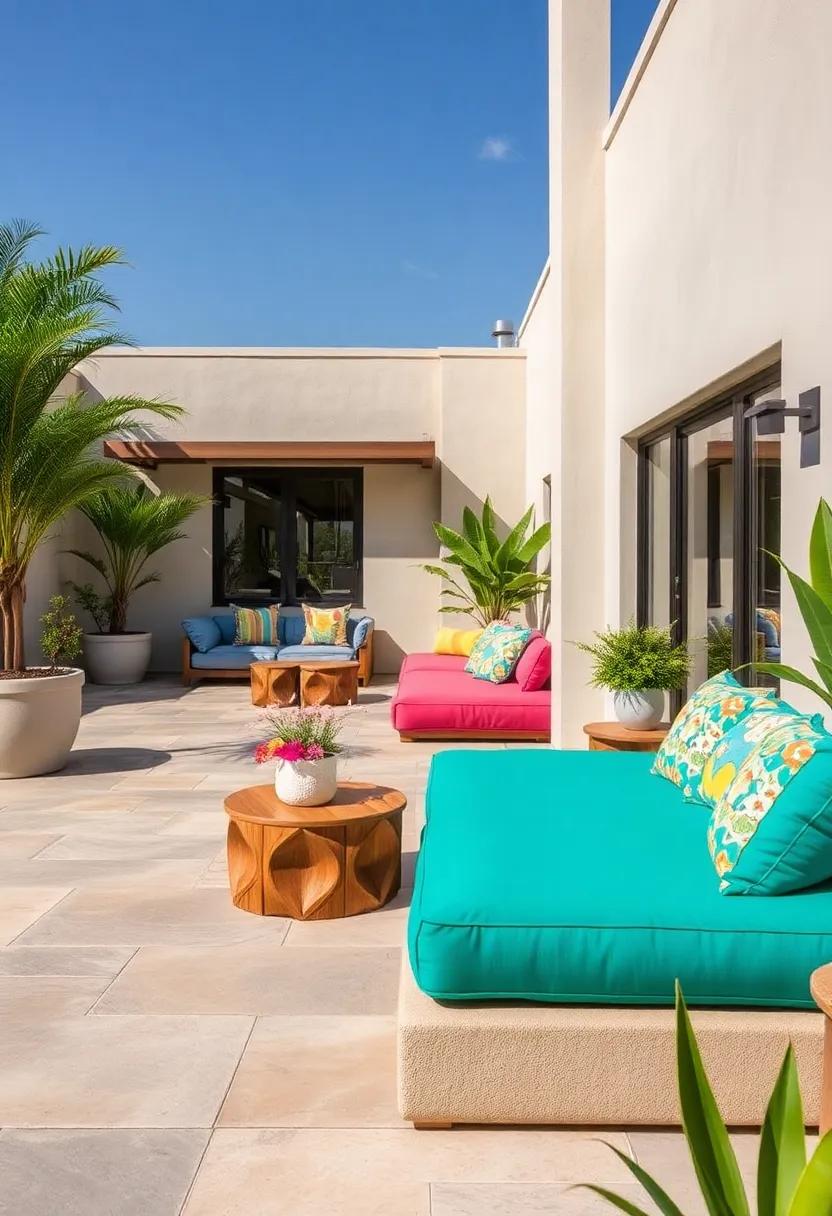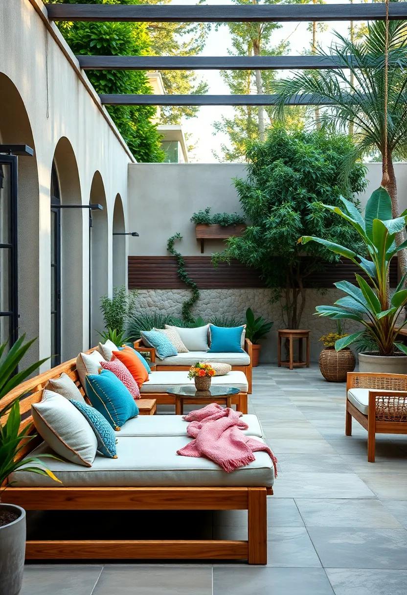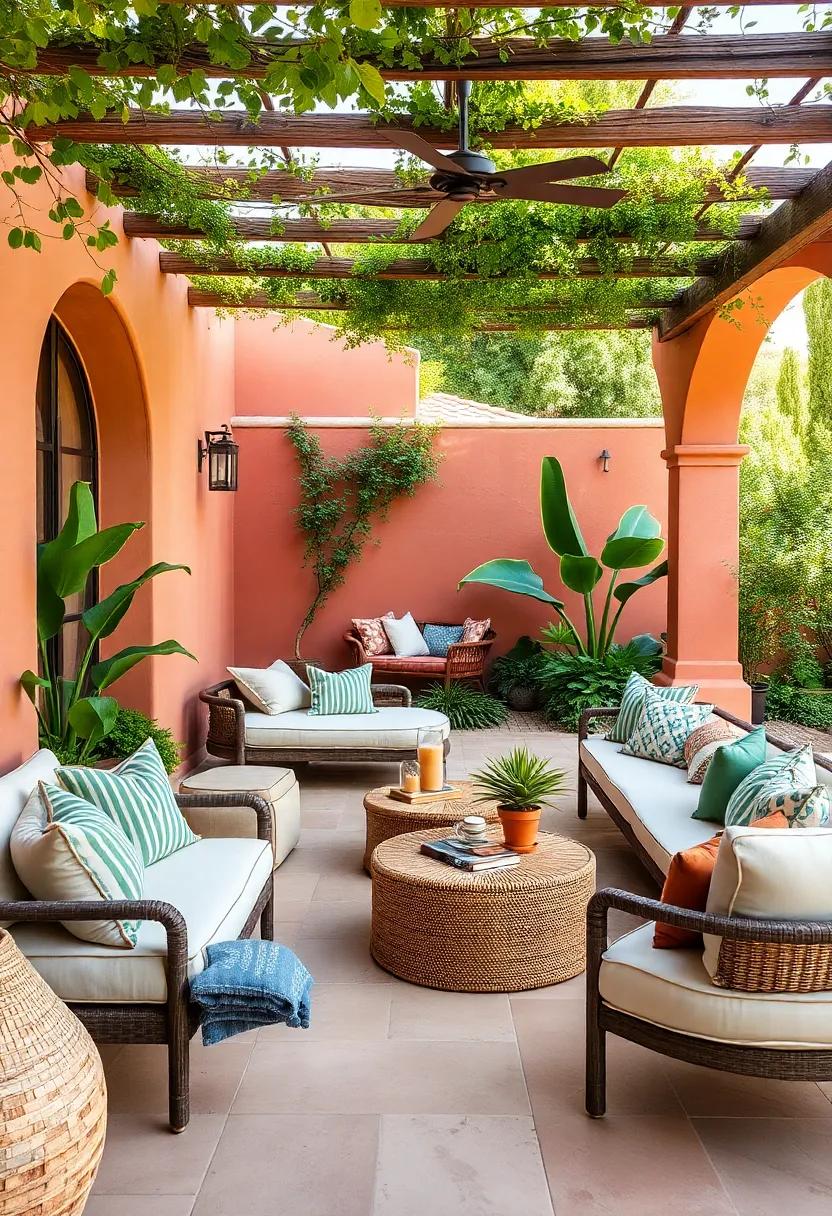 Integrating natural elements is key to achieving this coastal allure. Think about incorporating woven rugs and reed partitions that provide both privacy and aesthetics. The use of natural wood finishes for tables and chairs harmonizes beautifully with the earthy color palette. Consider a durable, weather-resistant coffee table adorned with unique terracotta planters and succulents to bring life to your space.To complete this Mediterranean-inspired retreat, hang string lights overhead for a starry atmosphere that will make evenings outside an enchanting experience. With the right blend of style and comfort, your patio will be the ultimate relaxation destination.