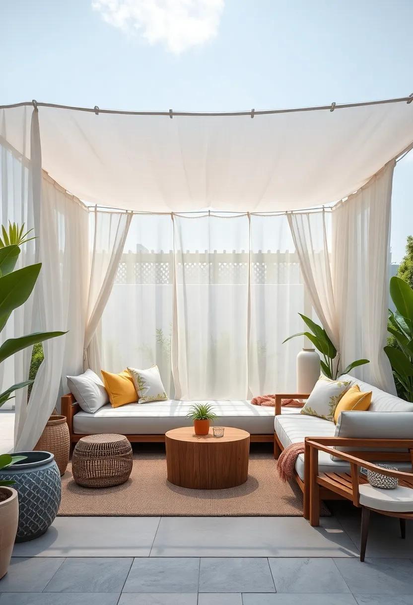 Transform your outdoor space into a tranquil oasis with the elegance of a cabana daybed adorned with sheer curtains. This stylish piece not only elevates the aesthetics of your patio but also creates a cozy, secluded environment perfect for unwinding. Imagine lounging on plush cushions, with the soft rustle of fabric curtains swaying gently in the breeze, offering both privacy and a touch of whimsy.The gentle dappled sunlight peeking through the sheer material sets the stage for blissful afternoons spent reading, sipping cocktails, or simply daydreaming.