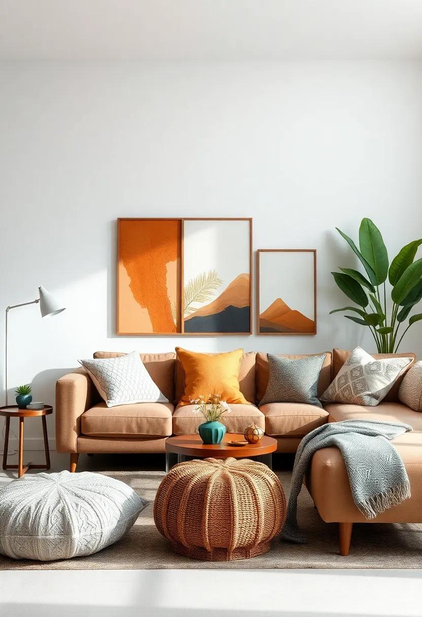 These elements not only enhance the visual appeal but also add layers of texture and warmth to your room. Create a cohesive look by selecting colors that work harmoniously with one another—think of pairing jewel tones with soft pastels or mixing bright colors with neutrals.This playful approach to color will ensure your living room is as unique as you are.