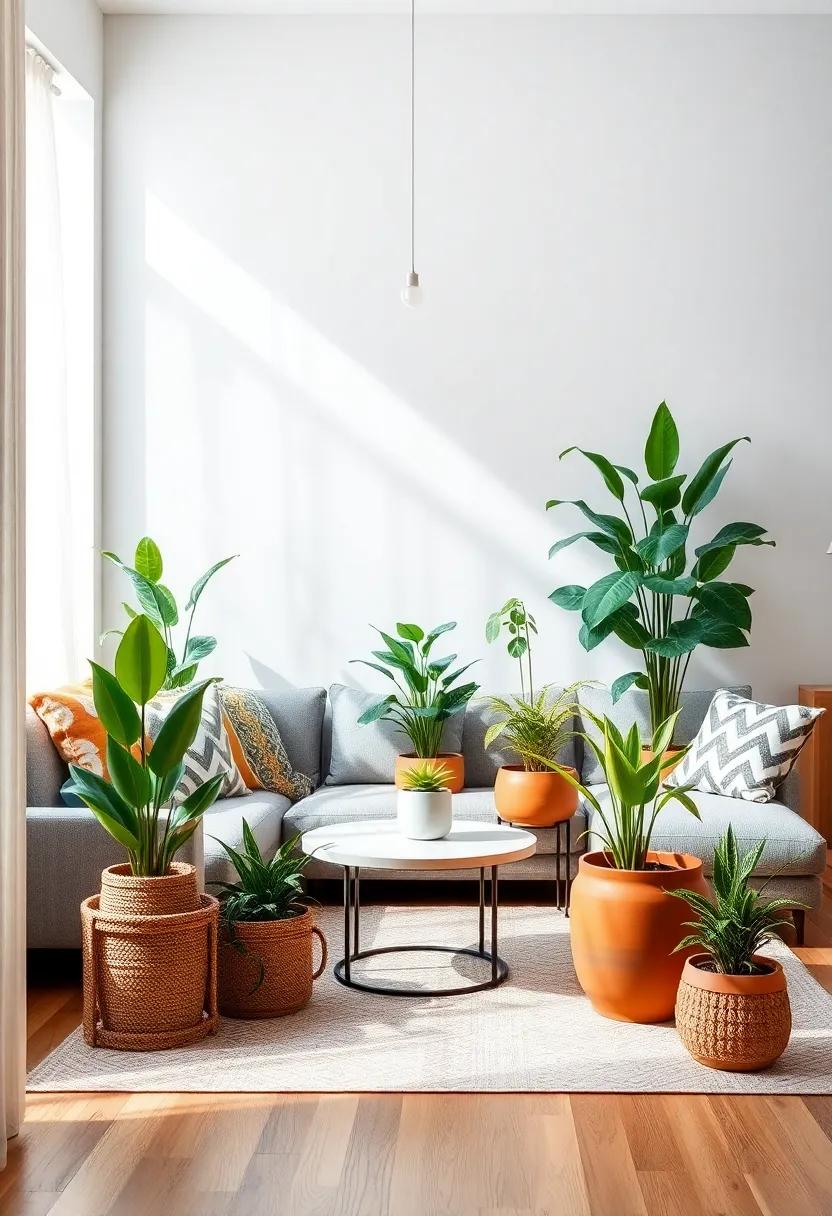 To encourage cohesion within your decor, choose planters that harmonize in color or texture while showcasing the diversity of plant species.You can create stunning focal points by grouping plants of differing heights, such as a tall snake plant alongside a cascading pothos in hanging planters. Here’s a quick reference to inspire your plant arrangements: